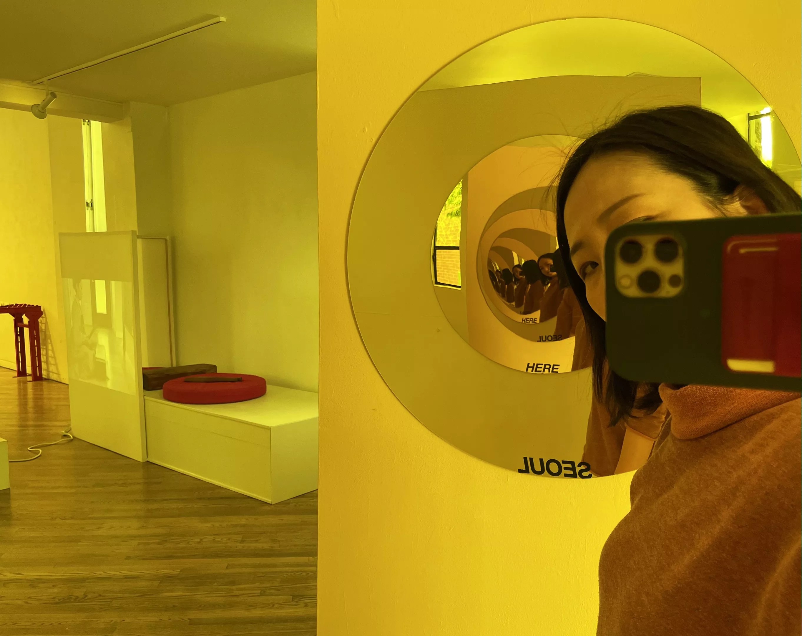 Lee breaks it down: “It’s meant to create a sense of not belonging in one place. Korea is not fully where I belong, and neither is Denver. I go back and forth. In Korea, you would never have two mirrors facing each other. It would be thought of as soul-sucking.”