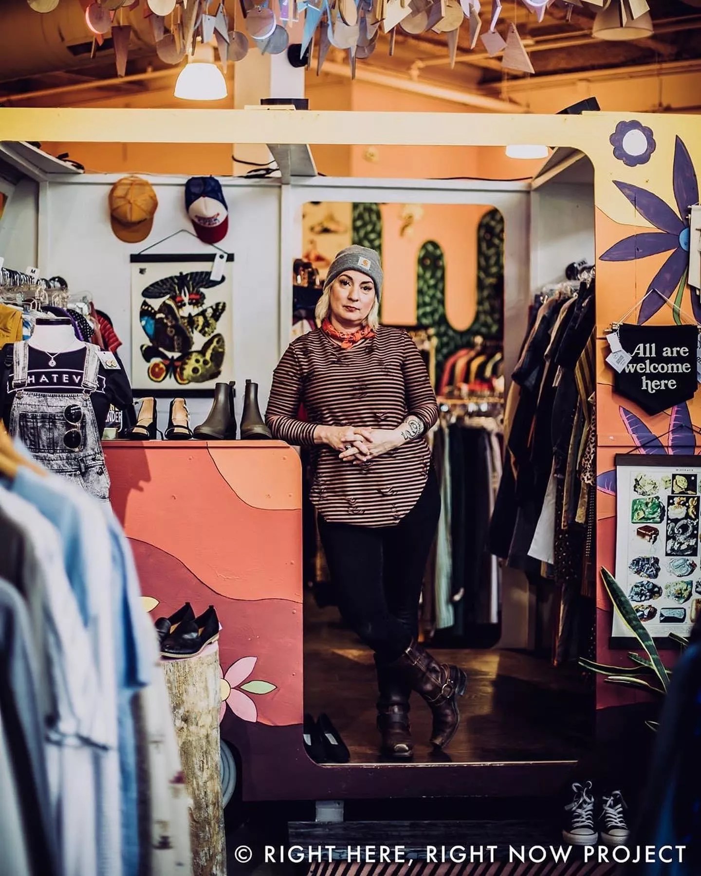 While the Omaha store hasn’t exactly made her rich, “it’s been a dream,” she says. It’s given her flexibility as a single mother to raise three children and to pursue her passion in both fashion and environmentalism. “It’s wild that it’s full circle, where the store that I was inspired by I’m now owning,” she adds. “I never would have guessed. I always thought I would have come into the Denver market as a competitor to Buffalo Exchange.”