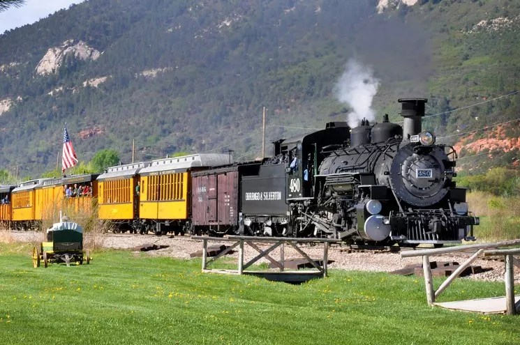 Don’t miss the Durango & Silverton Narrow Gauge Railroad’s (seen here in the summer) holiday train ride.