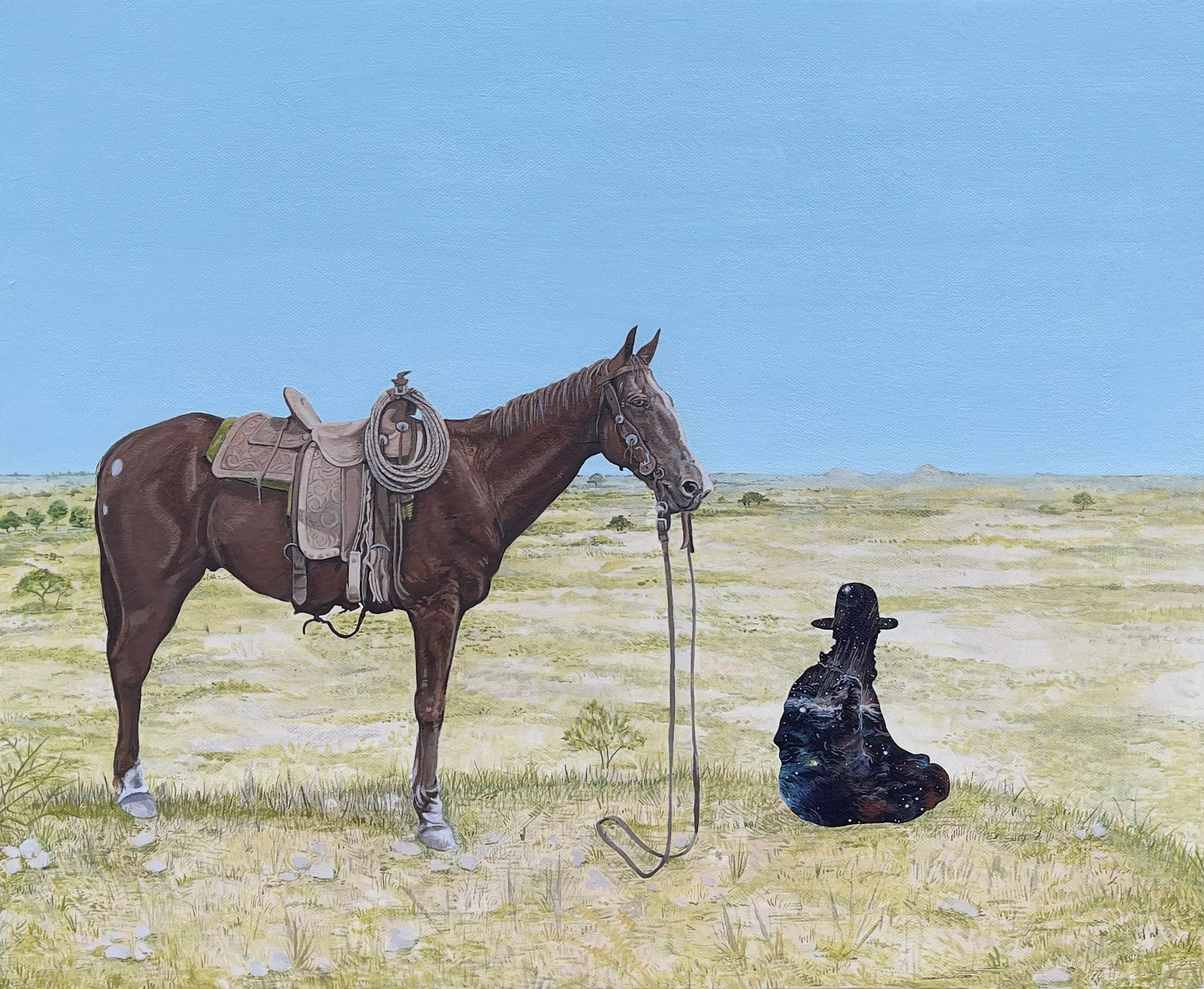 Josh Davy, “Slowly Fades Away,” 2023, mixed media on wood.