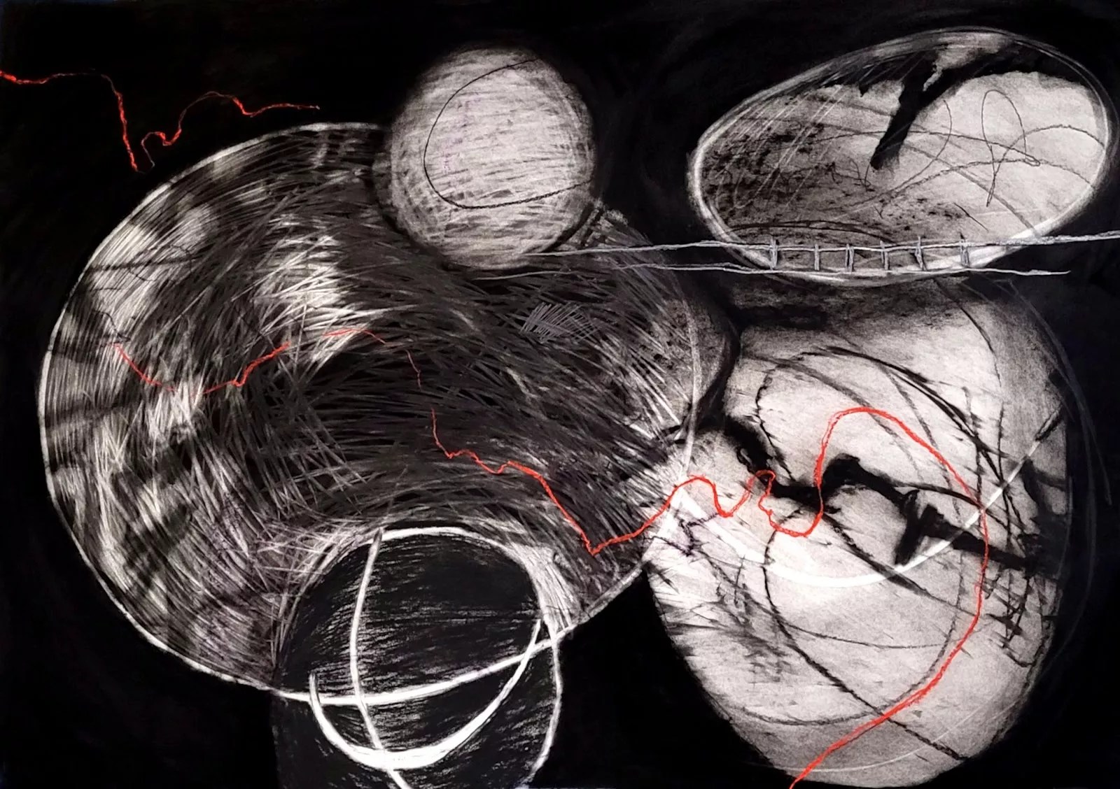 Space pairs abstract painters Jeff Wenzel and Monroe Hodder with sculptor Joshua Enck for a show that elevates works that criss-cross between elegant control of composition and medium and the art of letting go. Wenzel and Hodder both engage in layering canvases – Wenzel with an unstudied over-marking of the background in black and Hodder doing the same in wild contrasting scribbles or painterly blocks resembling chalk eraser marks spread akimbo – but come to different conclusions. Enck also exercises a freedom of expression in harmony with mastery of his materials, giving life to the inanimate. All in all, the arc of the show promises to be well matched.