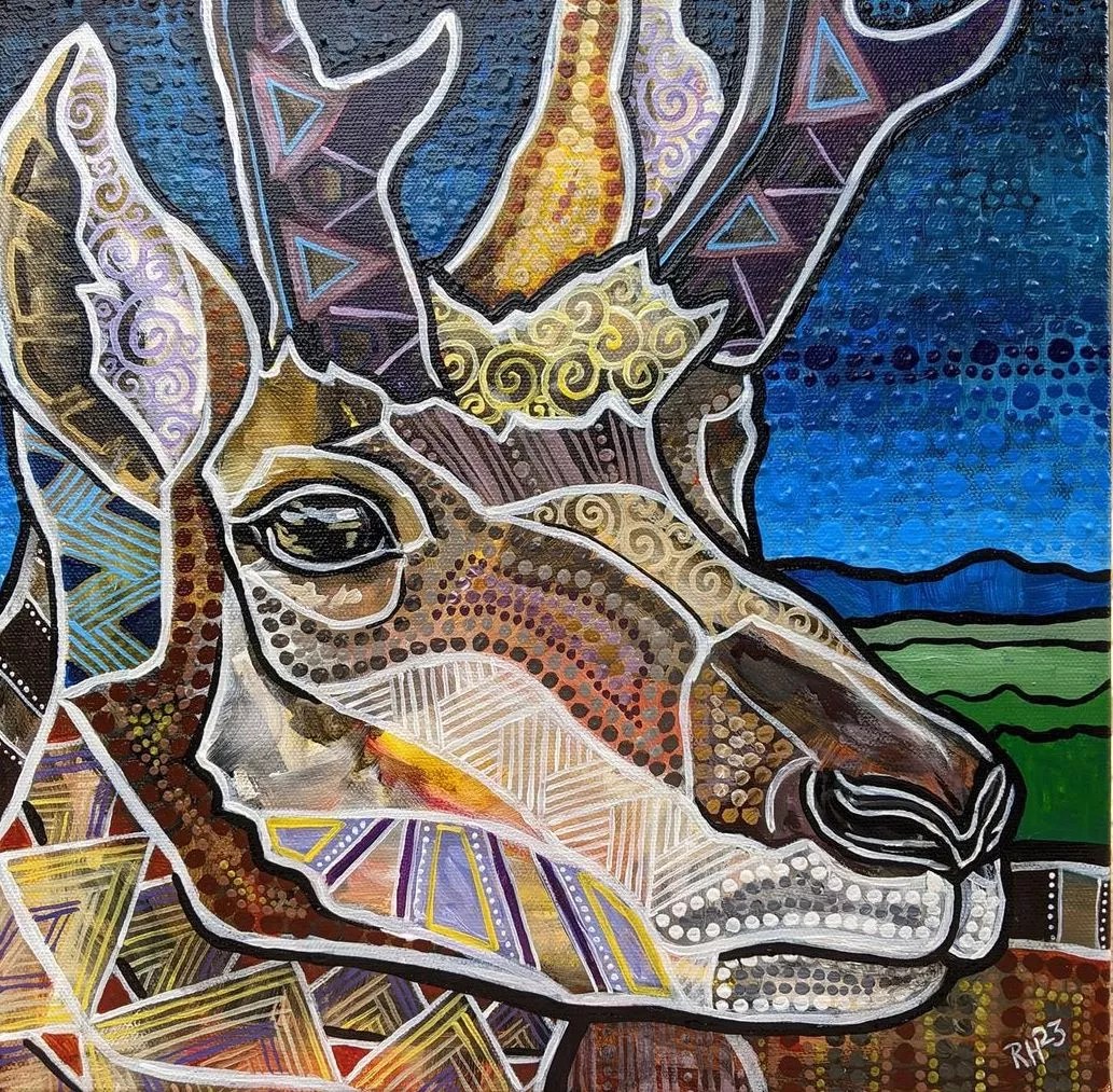 Artist Rachel Hueske’s animal portraits at Art in the Park are inspired by aboriginal paintings.