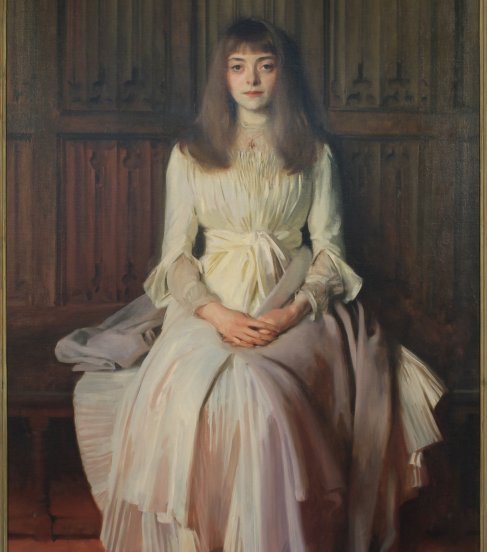 John Singer Sargent, “Portrait of Miss Elsie Palmer, or A Lady in White” (detail), 1889-1890, oil on canvas, way lined.