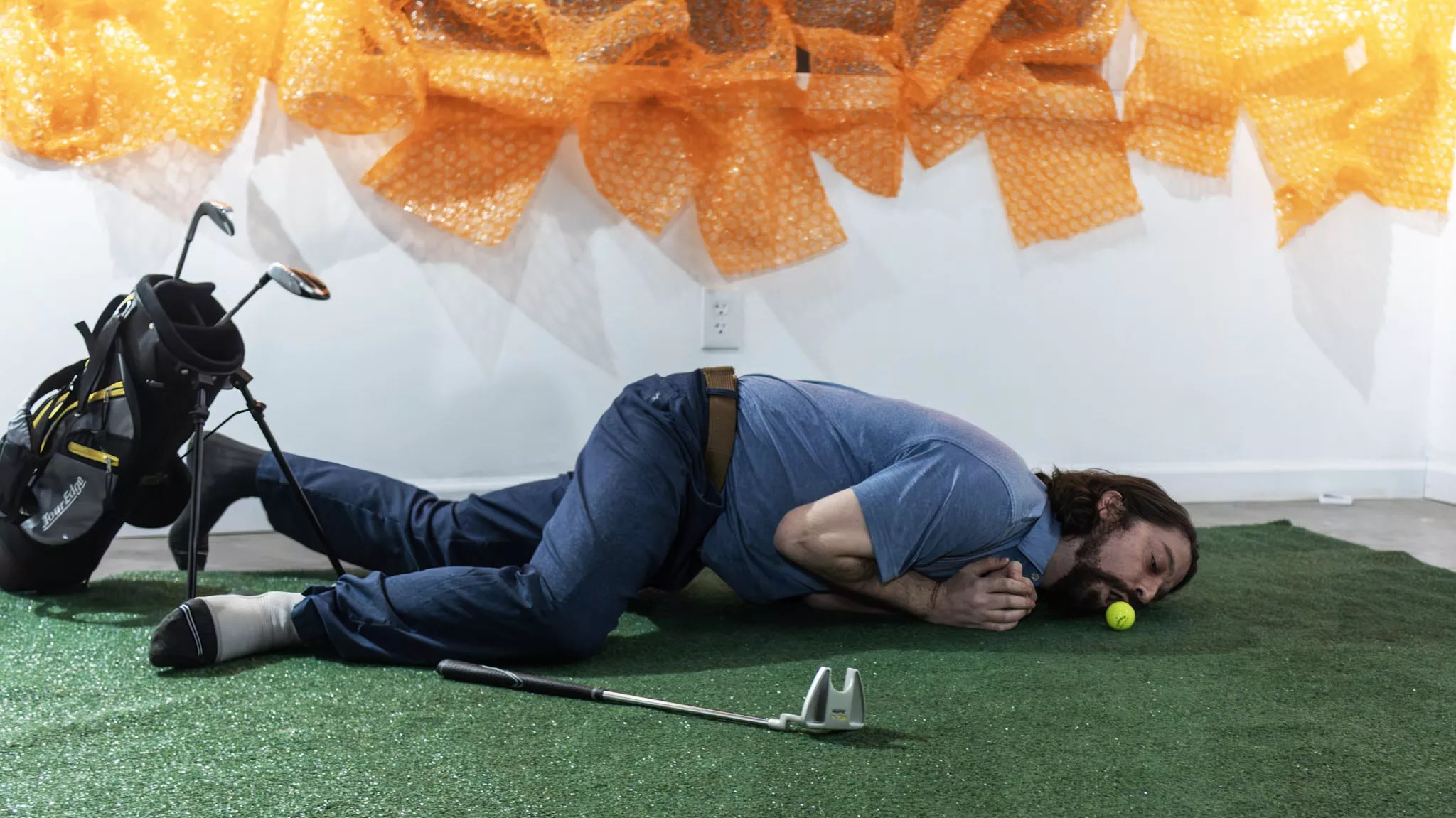 Creative director Josh Berkowitz performing to Frank Zappa using golf and proud Jewish father affirmations.
