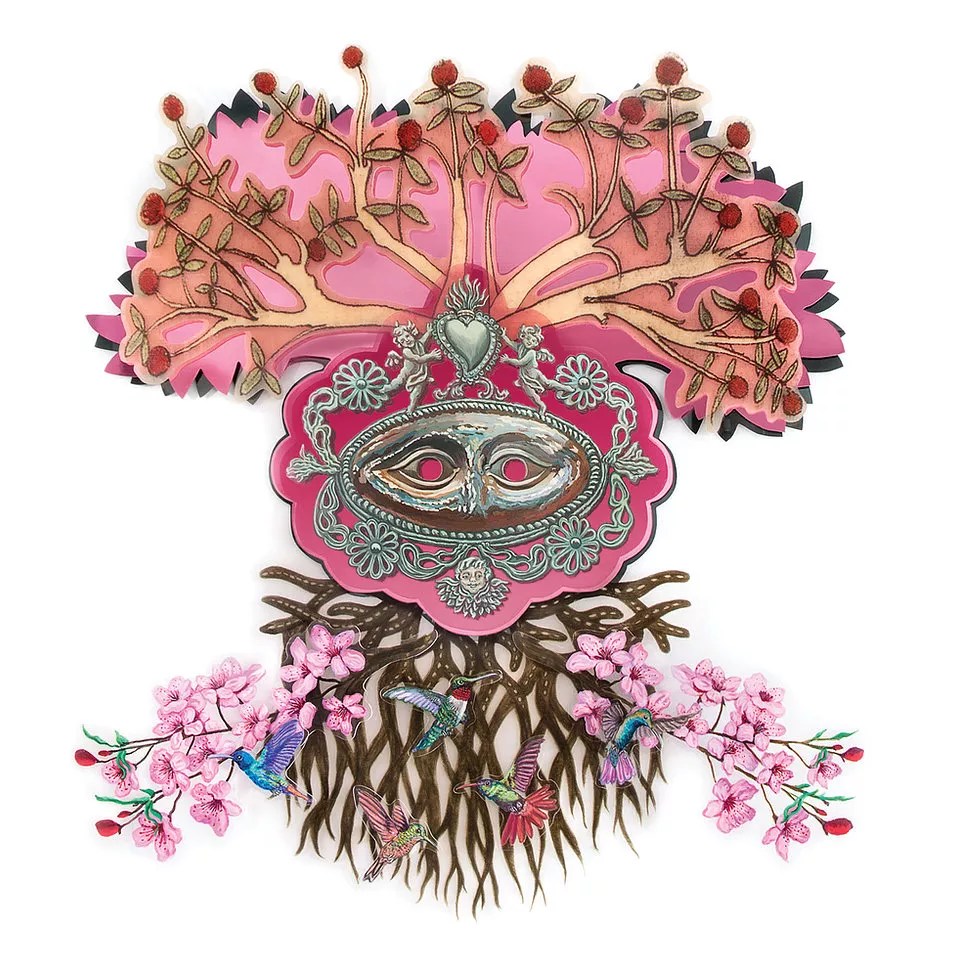 Pamela Joseph, “Prunus Cerasus (Cherry Blossom),” 2020, acrylic and mixed media on plexiglass.