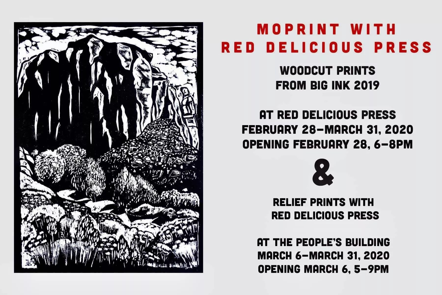 Red Delicious Press, known for its massive red-enamel printing press dubbed “Red Delicious,” hosts a show of really big woodcut prints by a congress of Colorado printmakers who required the press’s oversized dimensions to follow through with their ideas. Red Delicious will also mount a relief-print show at the People’s Building, 9995 East Colfax Avenue in Aurora, beginning March 6, in addition to hosting a Print N Pint fundraiser on March 7 at Cheluna Brewing Company at Stanley Marketplace, 2501 Dallas Street in Aurora.