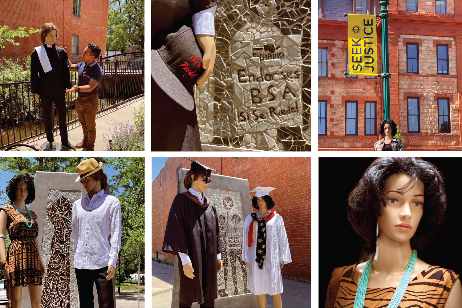 BMoCA’s Present Box lobby installation space welcomes artists Judy Miranda and Geraldina “Jerry” Lawson, both regulars at Denver’s Chicano Humanities and Arts Council, who’ve created a multimedia complement to the temporary sculpture El Moviemento Sigue, which currently stands outside the museum through next March as a commemoration of Los Seis de Boulder, six Chicano activists who died in a Boulder bombing in 1974. Miranda and Lawson update social justice issues raised decades ago by Los Seis to include today’s struggles of America’s Dreamers and migrants at the border.