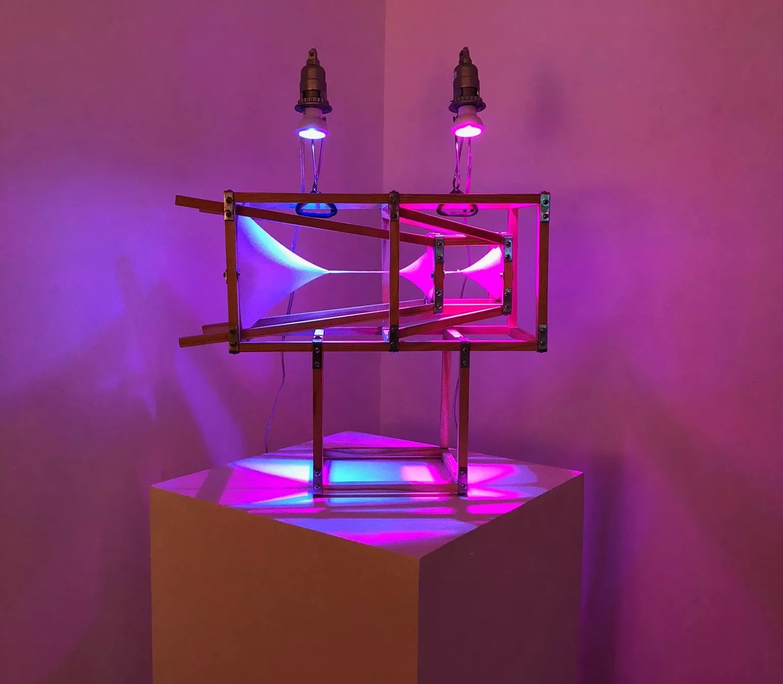 Edge Gallery member Stephen Shugart steps out of the co-op arena for a solo show of his glowing light-work assemblages at ReCreative. Get ready for incandescent colors and art viewing in a darkened room.