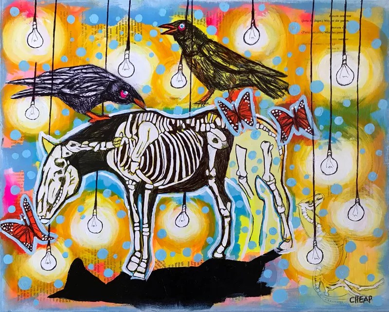 The title of this show, Three Kings, takes on a double meaning by referring not only to the trio of artists participating, but also to the defunct bar 3 Kings Tavern and former co-owner Jim Norris, who always had room for their artwork in the club. All three met and spent hours there, sketching at a table or as employees. They’ll be plastering the walls at Bitfactory with paintings, mixed-media and found-object work, and in Finley’s case, macabre upcycled thrift-store toys from his ongoing Re-Arted series.