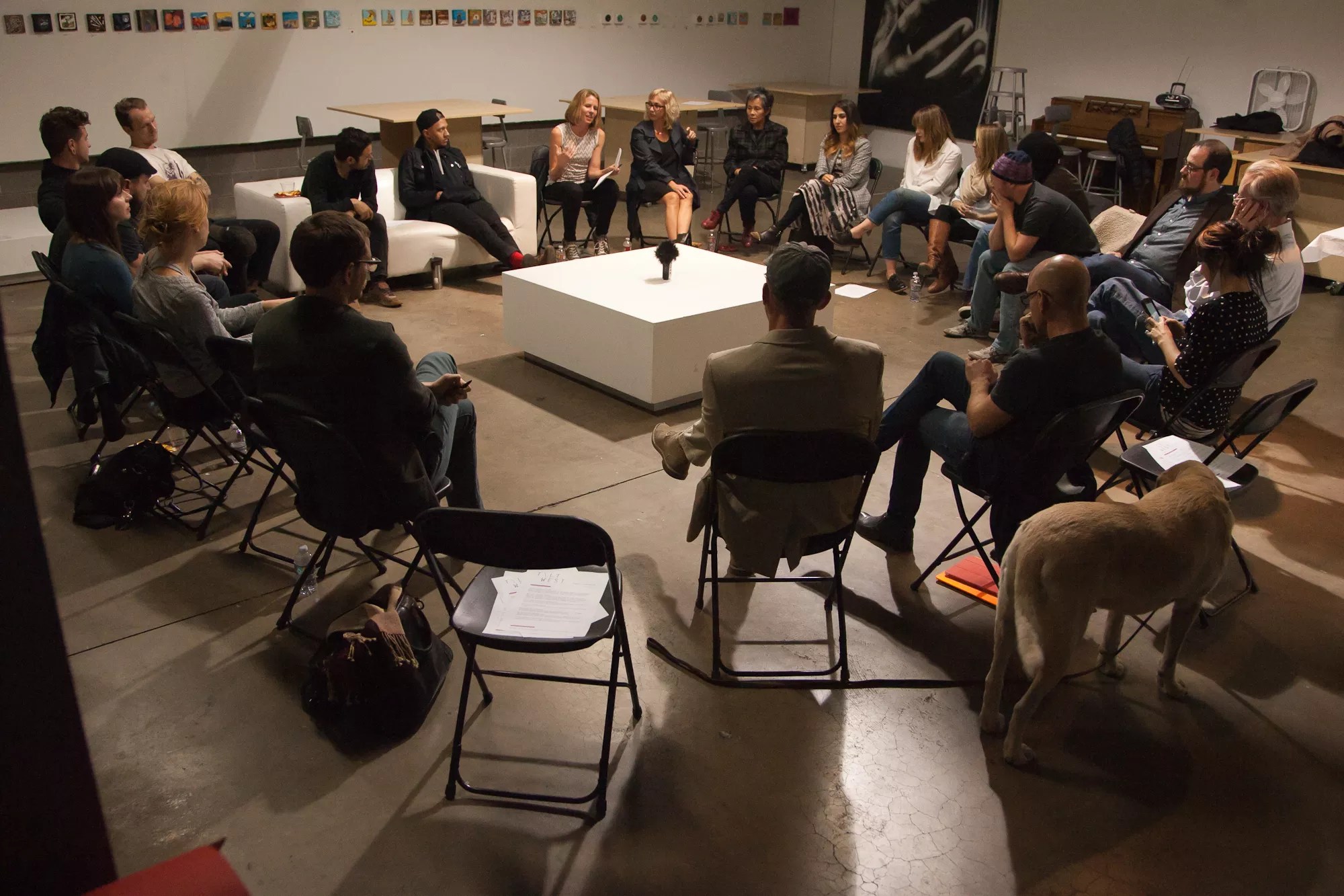 For each roundtable, thirty people are invited to participate, nineteen of those chosen by the prompter and the other ten chosen by Tilt West. The idea is to have these artist-prompters pull voices from their own networks into the fold and combine them with other community perspectives – teachers, writers, gallery owners and architects have been past participants – to create a conversation with diverse voices. Each edition begins with the prompter introducing and briefly framing the topic, then the floor is open. Other than the prompter, no one in the group is introduced by name or title, so all voices can come together on the same plane.