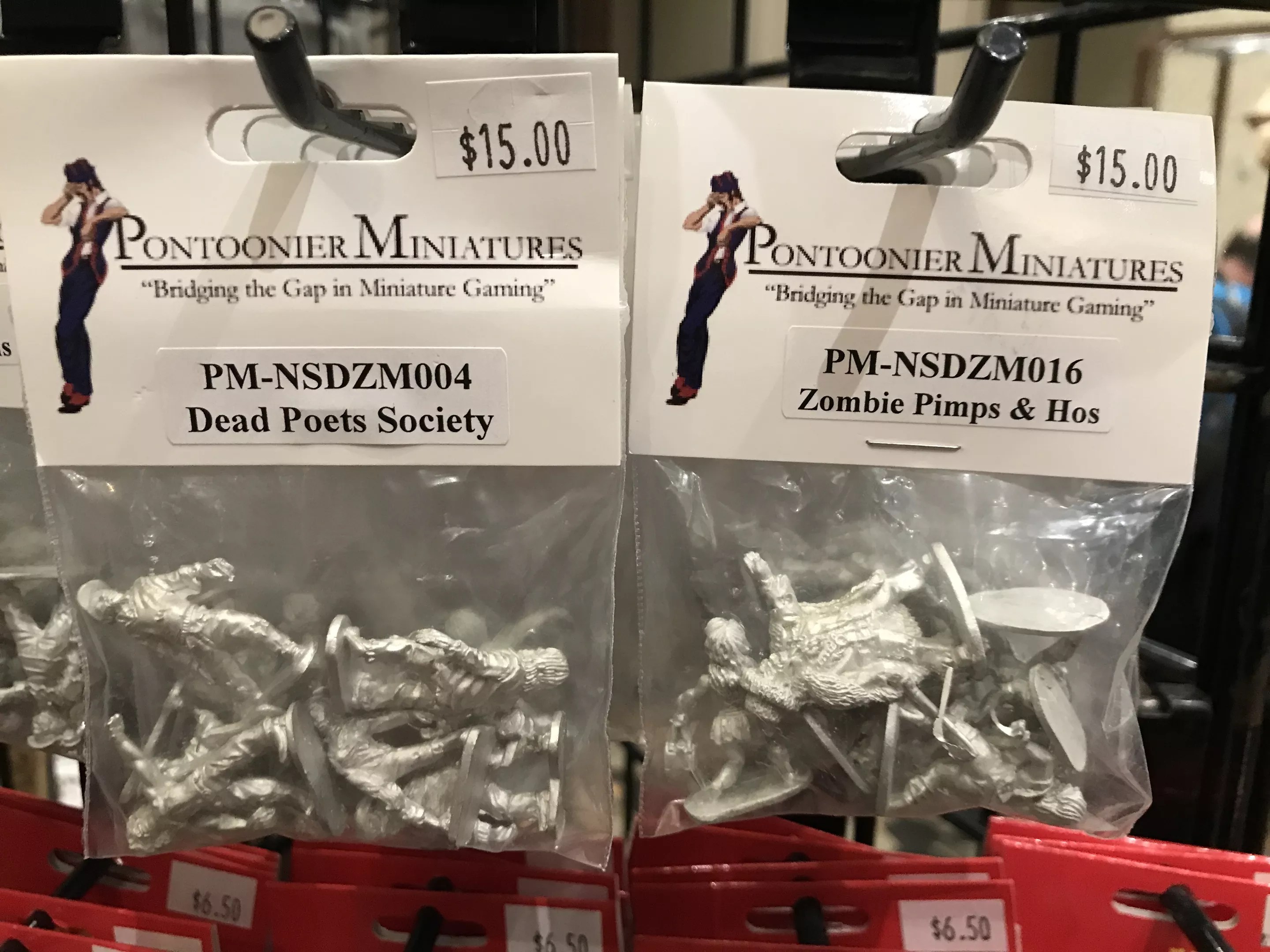 There were, as one might expect, miniatures all over the place – for sale, in games, etc. There were monsters and heroes, fantasy and sci-fi, painted and ready-to-paint. But some miniatures are so beautifully specific that they stand out, such as Pontoonier Miniature’s diminutive zombies. If Dead Poets and Pimps and Hos aren’t enough for you, there were also miniatures of the undead from convenience stores, old folks’ homes, gas stations, cheerleaders, sporting teams and more. It’s more than enough for a pretty thorough zombie apocalypse that includes just about every sector of society – which makes sense, right? Zombies are the height of equal opportunity.