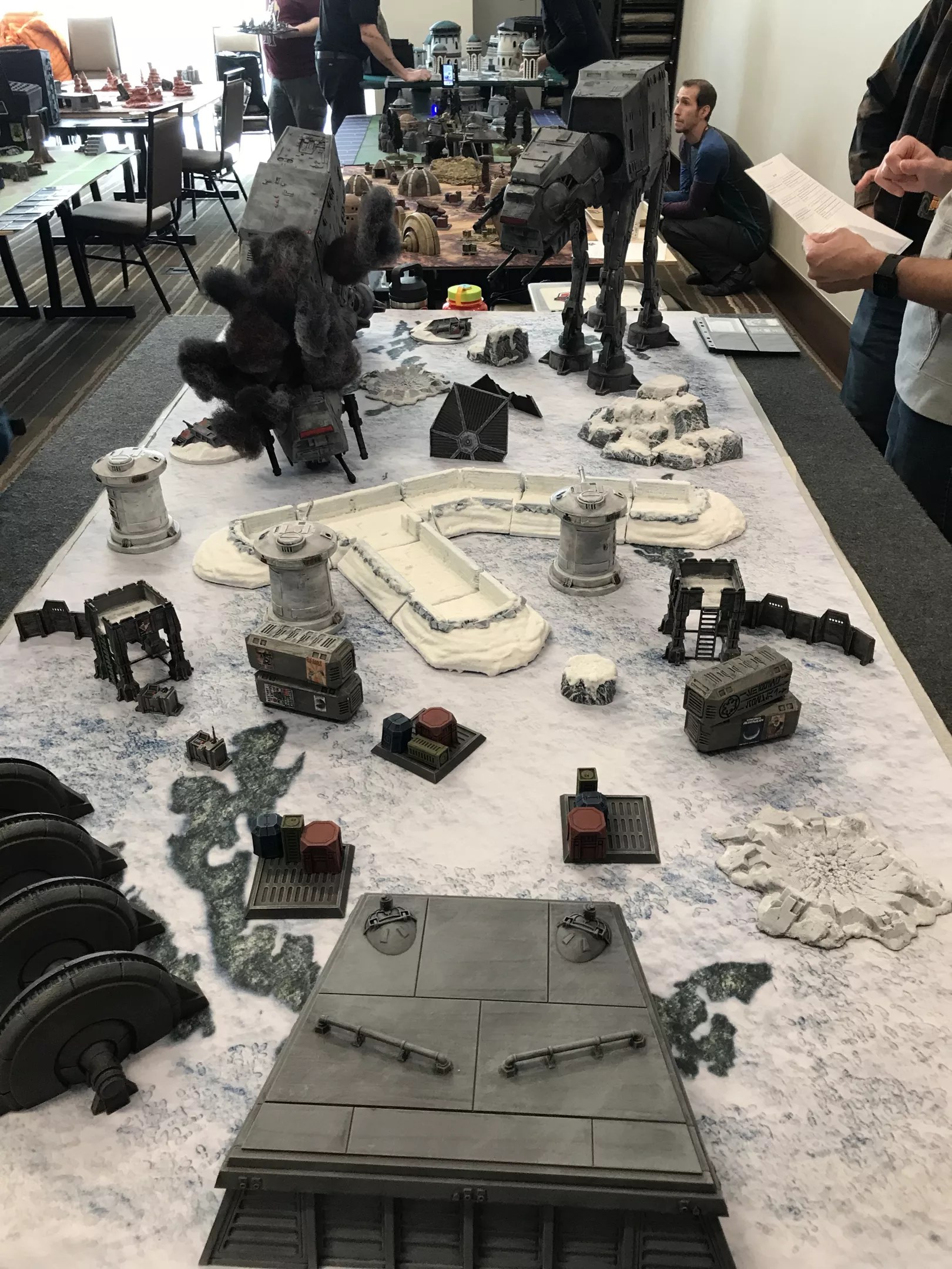 Seriously, how cool is this layout for a Star Wars: The Empire Strikes Back miniatures game? It even has an AT-AT walker in mid-descent after being taken out by a snowspeeder grappling hook. Or a bunch of arctic Ewoks, which would be arguably more dangerous by far.