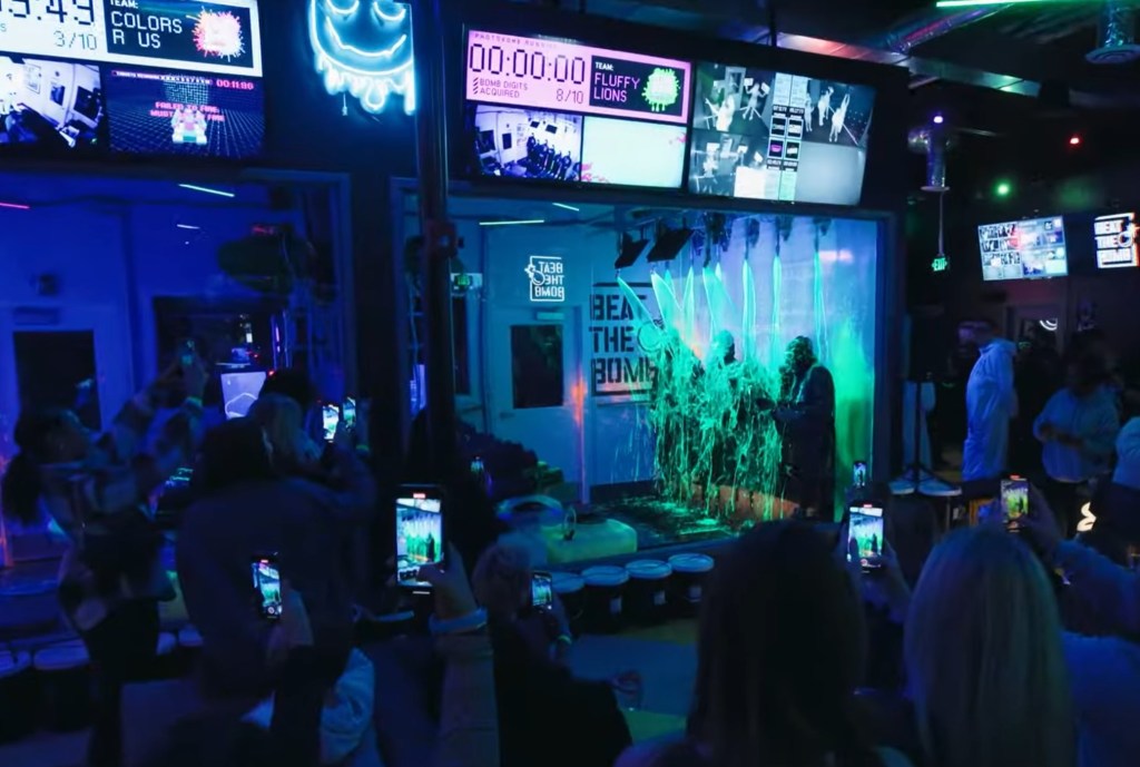 Okay, so this is an Escape Room, but one that can blow up in your face. Literally. As our own Kristen Fiore wrote back in April 2025 when Beat the Bomb debuted at the York Street Yards, this ain’t your mother’s escape room. This is one where if you don’t prevail, you’ll face an explosion of paint, or foam, or slime — and all the while bystanders can sit witness to your folly safe behind glass and drinking beer. Perhaps they’ll cheer you on…or maybe they’ll be yelling, “DANCE MONKEY! DANCE!” Which probably means they’ve had too much to drink and ought to be cut off, but still…those scars are gonna linger. Luckily, the paint or foam or slime will wash right off…so hopefully you and your friends can do better next time. Only about one in ten teams will beat the bomb on their first try. Which means the beer garden observatory is an entertaining place to be.
