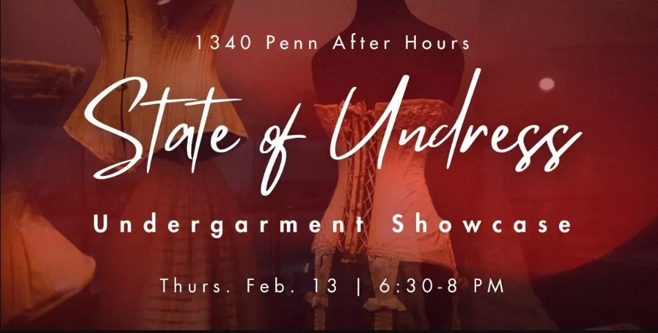 Looking for something a little more scandalous? Come to the first installment of the 1340 Penn After Hours series and uncover the layers of undergarments worn in Margaret Brown’s lifetime at this speakeasy event. A cocktail or mocktail is provided with the ticket, which can be purchased here.