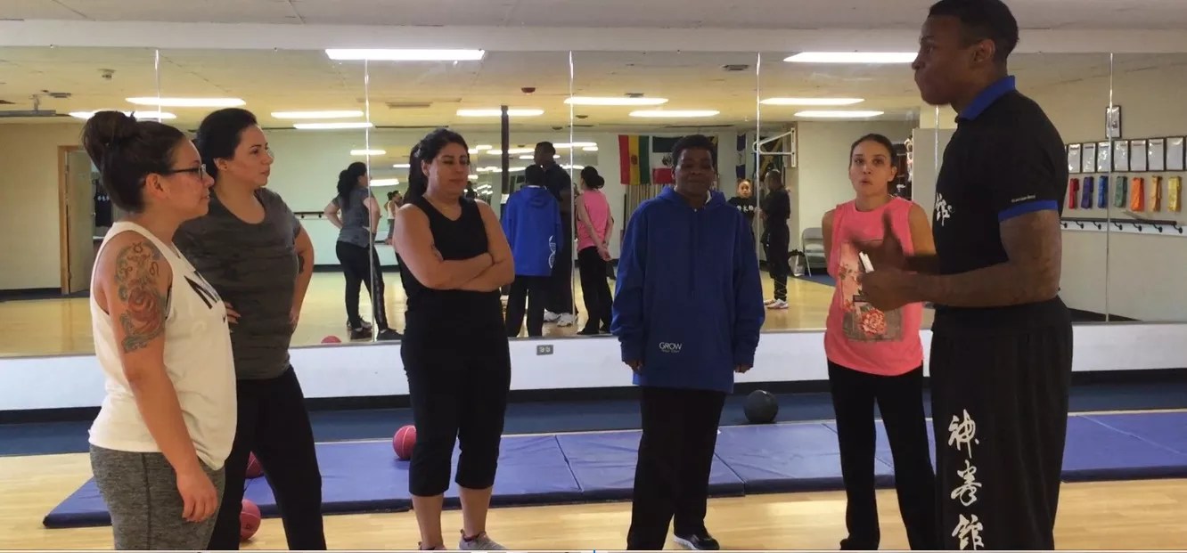 He calls his class Women Learn to Kick Ass and says, “It’s not defensive. It’s not self-defense. It’s self-offense. Women aren’t victims.”