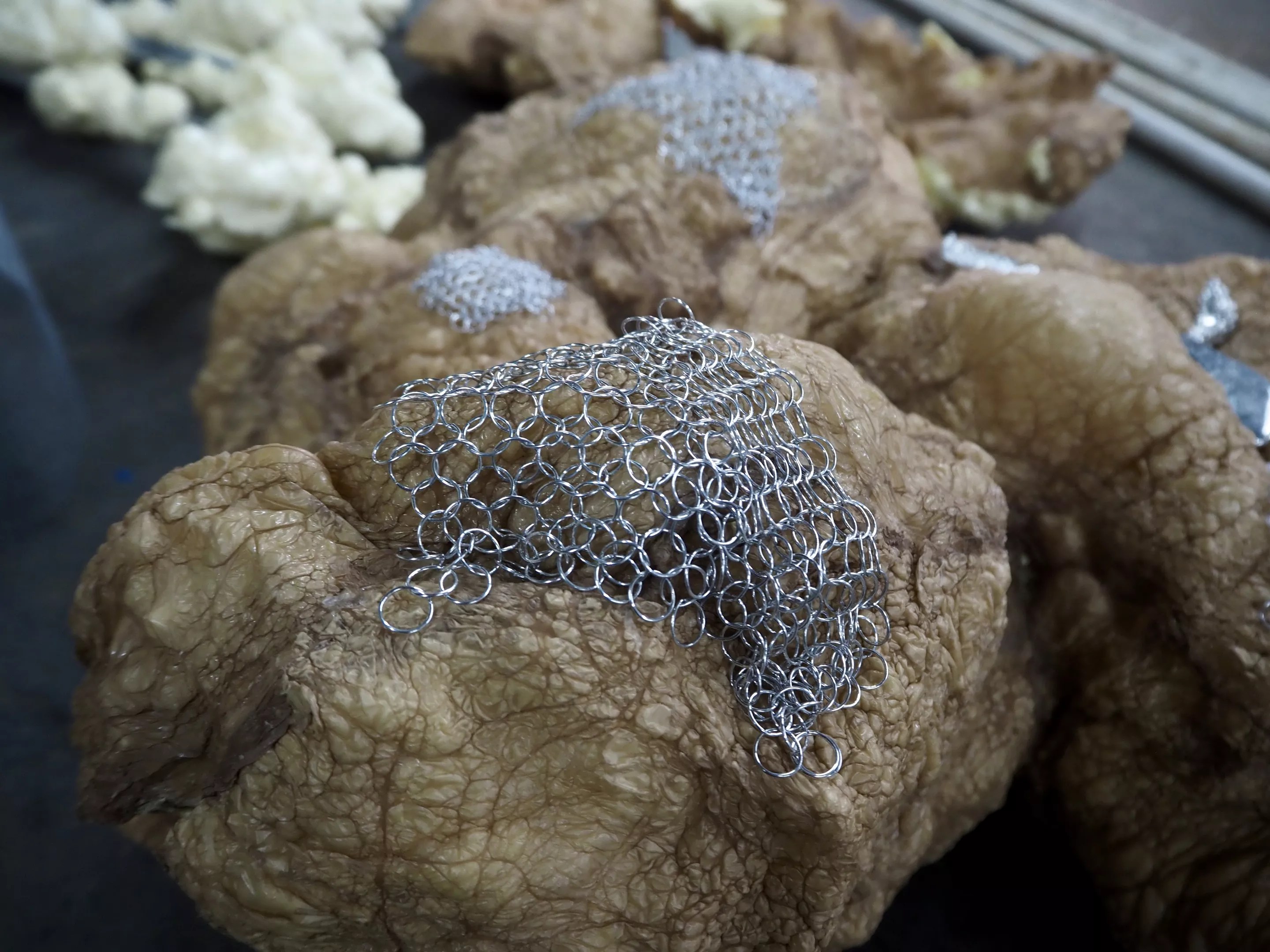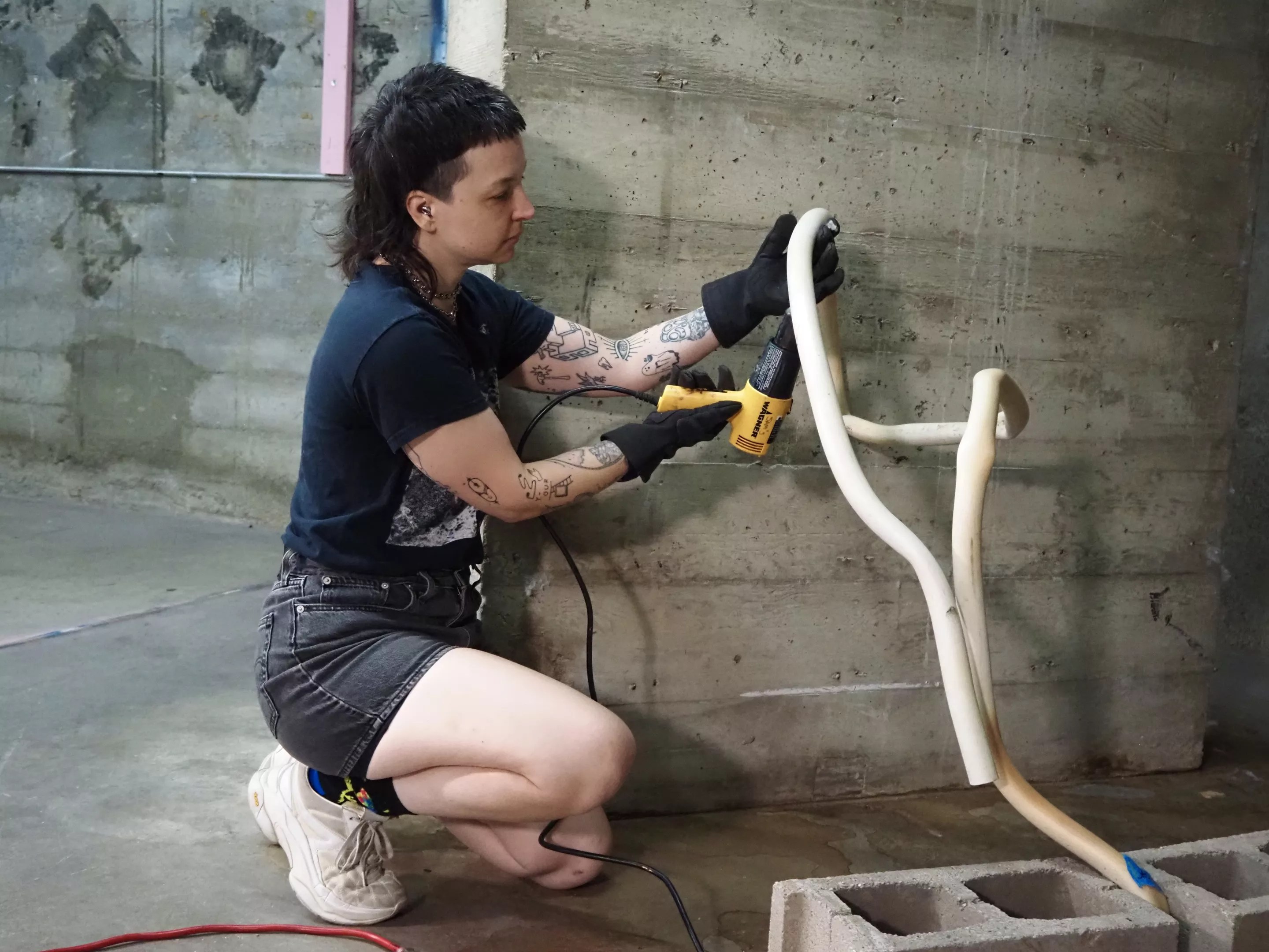 Grabowska is working on a series of sculptures about people’s postures, taking inspiration from a variety of models through sessions of recorded conversation. Together, the artist and model come up with a body posture in which the model feels most protected,and Grabowska traces the postures with the tubes. “It’s almost like figure drawing, but in 4D,” Grabowska says.