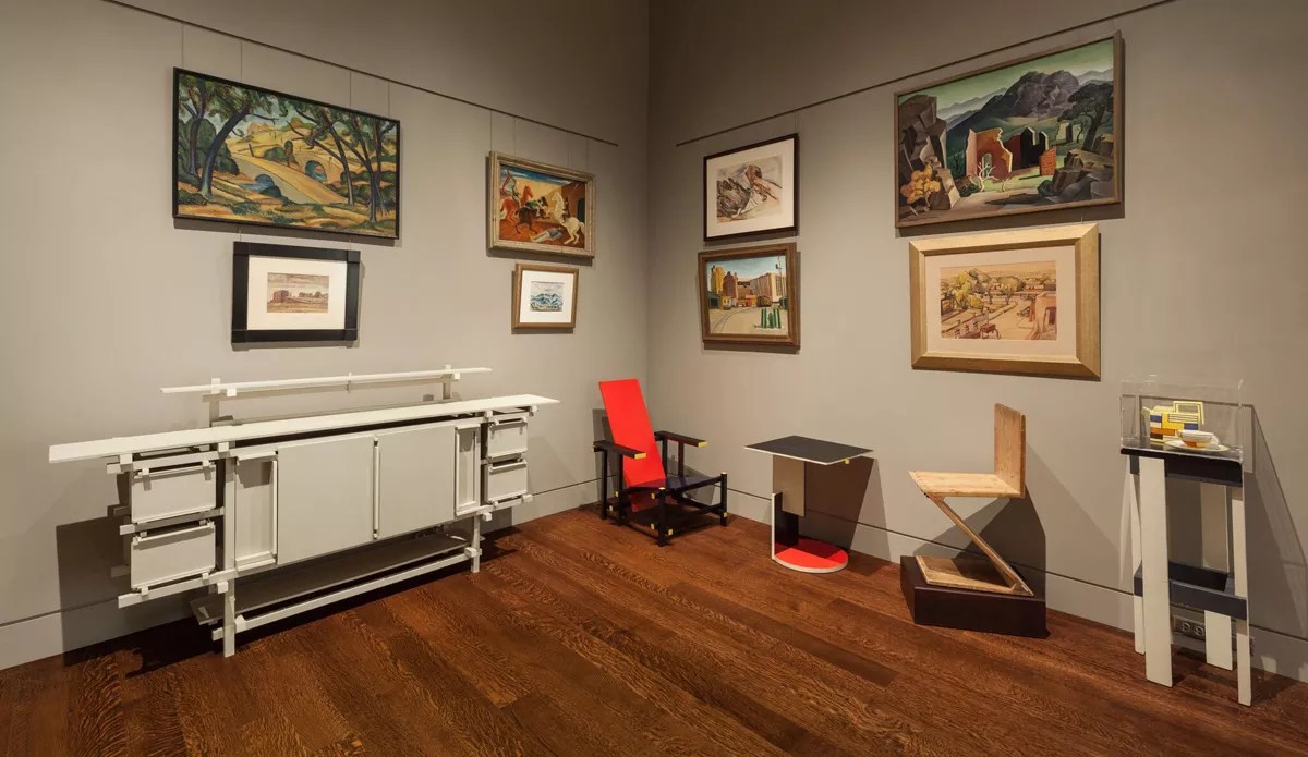 There are three galleries off either side of the Promenade, and Grant has employed them to bring visitors through the stylistic phases of the modern movement. Using paintings and works on paper by Colorado artists together with furniture and decorative items from around the world, Grant has laid out the Arts and Crafts, Art Nouveau, Bauhaus, Art Deco, Modern and Post-Modern styles. To get the sweeping historical experience that he’s intended, visitors begin in the first gallery to the right and continue through the next two, then cross the Promenade and work their way back through the other three. Grant has taken into account the views of the galleries from the Promenade, and also provided teasers for each gallery, with objects linked to the style inside displayed in niches along the passageway.