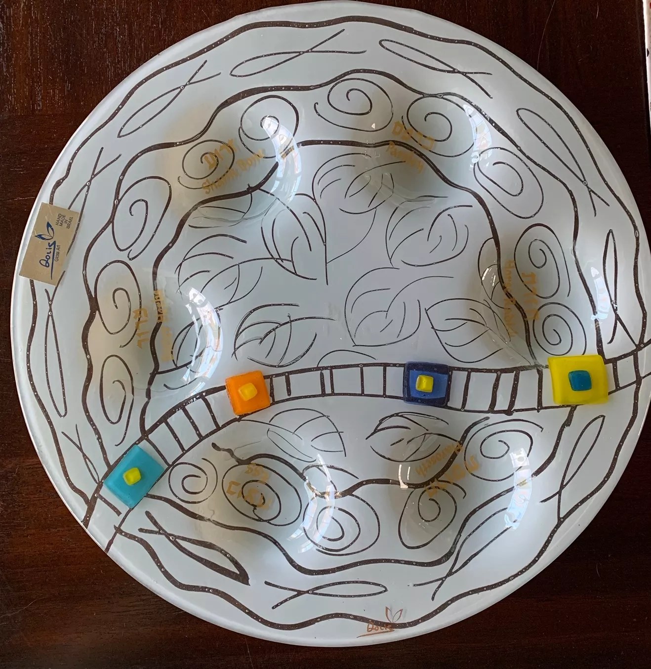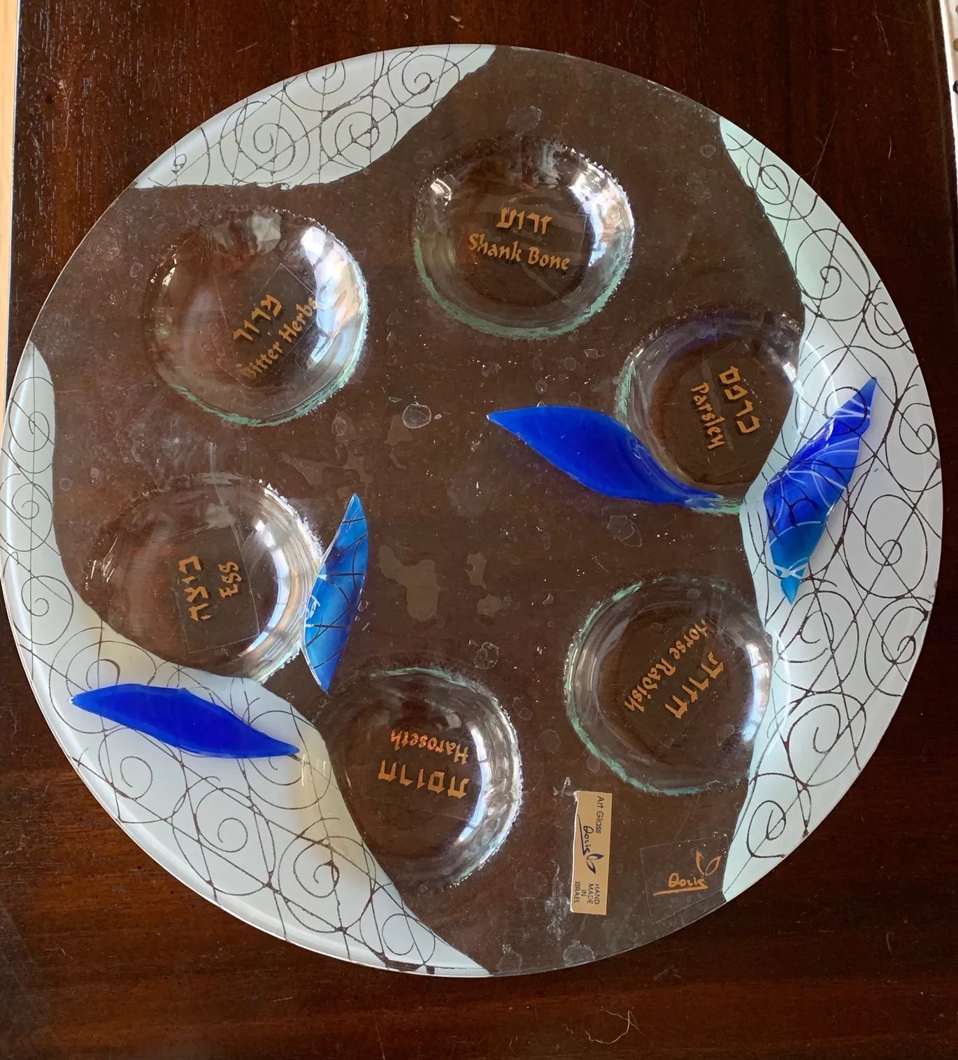 A traditional seder plate has a shank bone, egg, vegetable, bitter herbs and charoset.