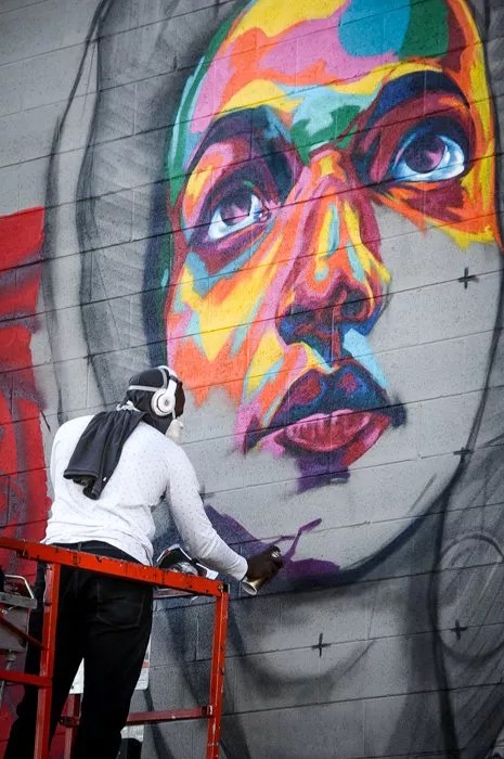 In contrast, artist Mario Zoots went back to his roots as a street artist for the show by building a large-scale concrete wall painting. And another muralist, Sandra Fettingis, references a pile of rubble in her wall installation, inspired by street art she contributed to the Duct Work project underneath I-70 that will eventually be demolished to make way for interstate expansion. “You put up work, it comes down – that’s really symbolic of Denver right now,” notes McGowan.