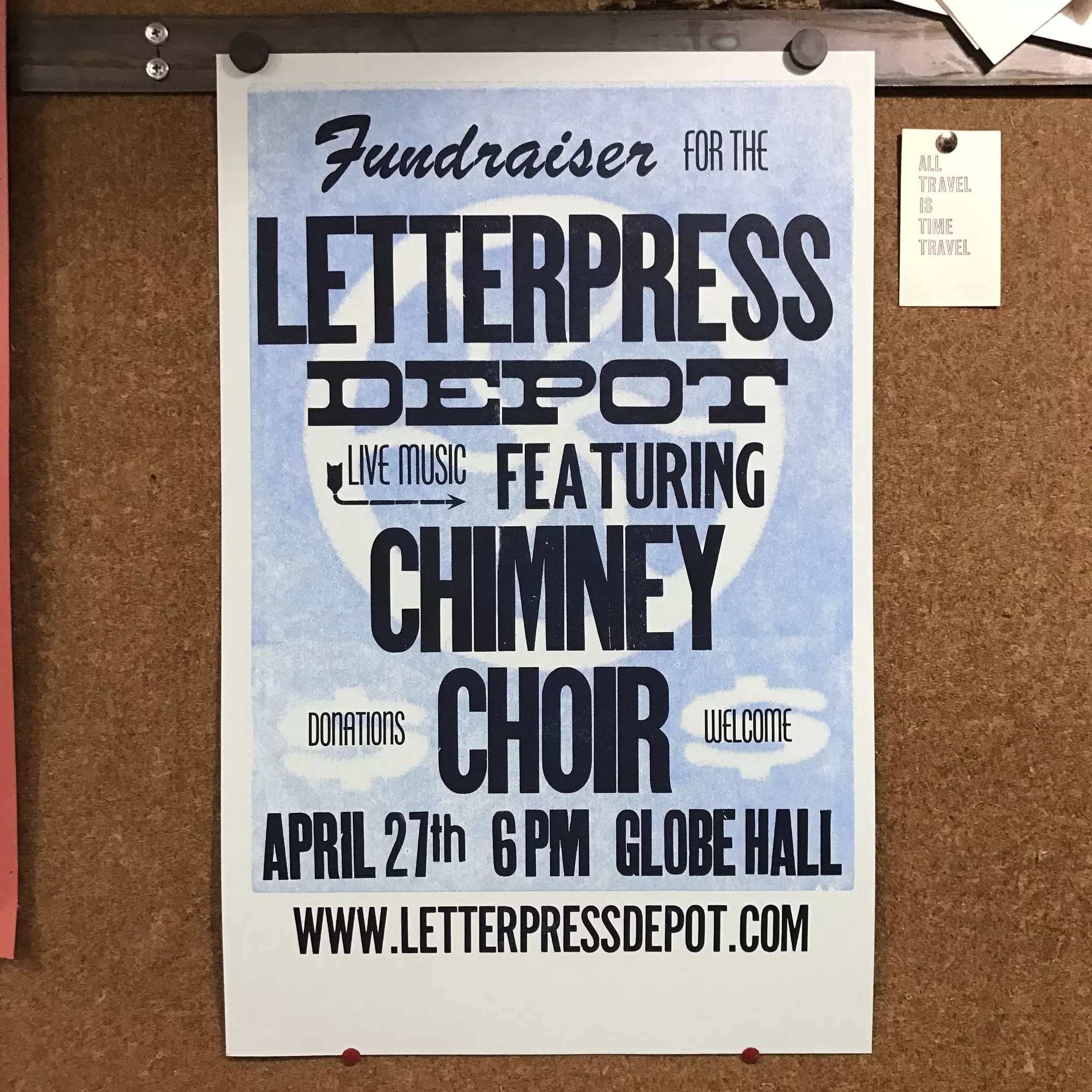 Gig poster for Letterpress Depot’s fundraiser lunch party.