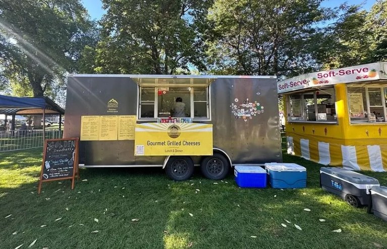 Owner Jerry Cass built the stage-inspired rig himself and every sandwich name is a musician-related pun.