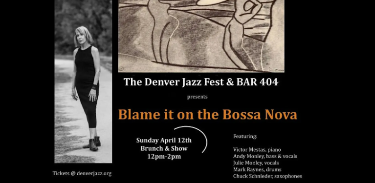 Denver Jazz Fest Presents Blame it on the Bossa Nova! When: Sun., Apr 12, 12:00 pm Where: Bar 404 Tickets: TBA | Get Tickets with Julie Monley advertisement