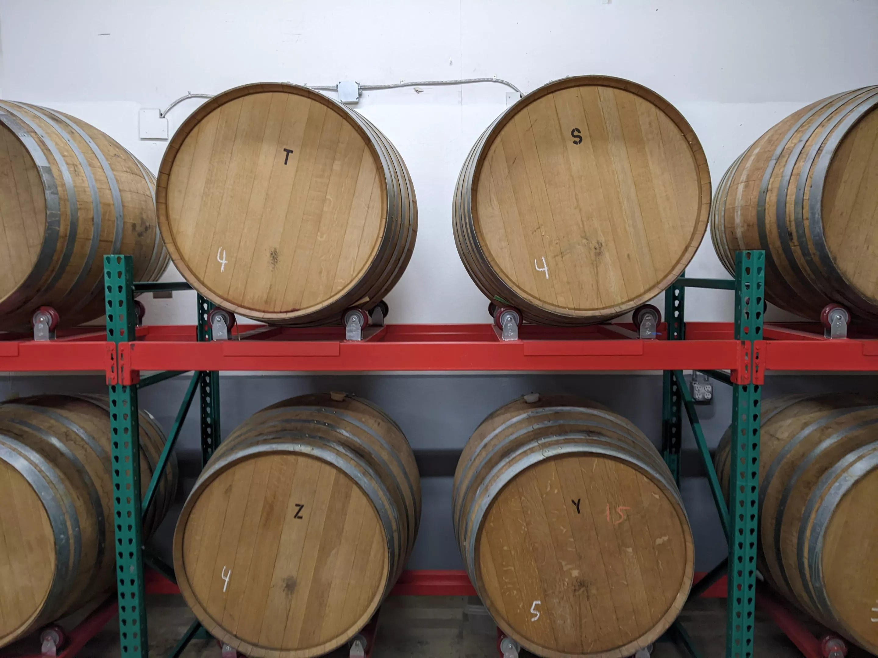 The beer ages for up to four years in 132-gallon puncheon barrels.