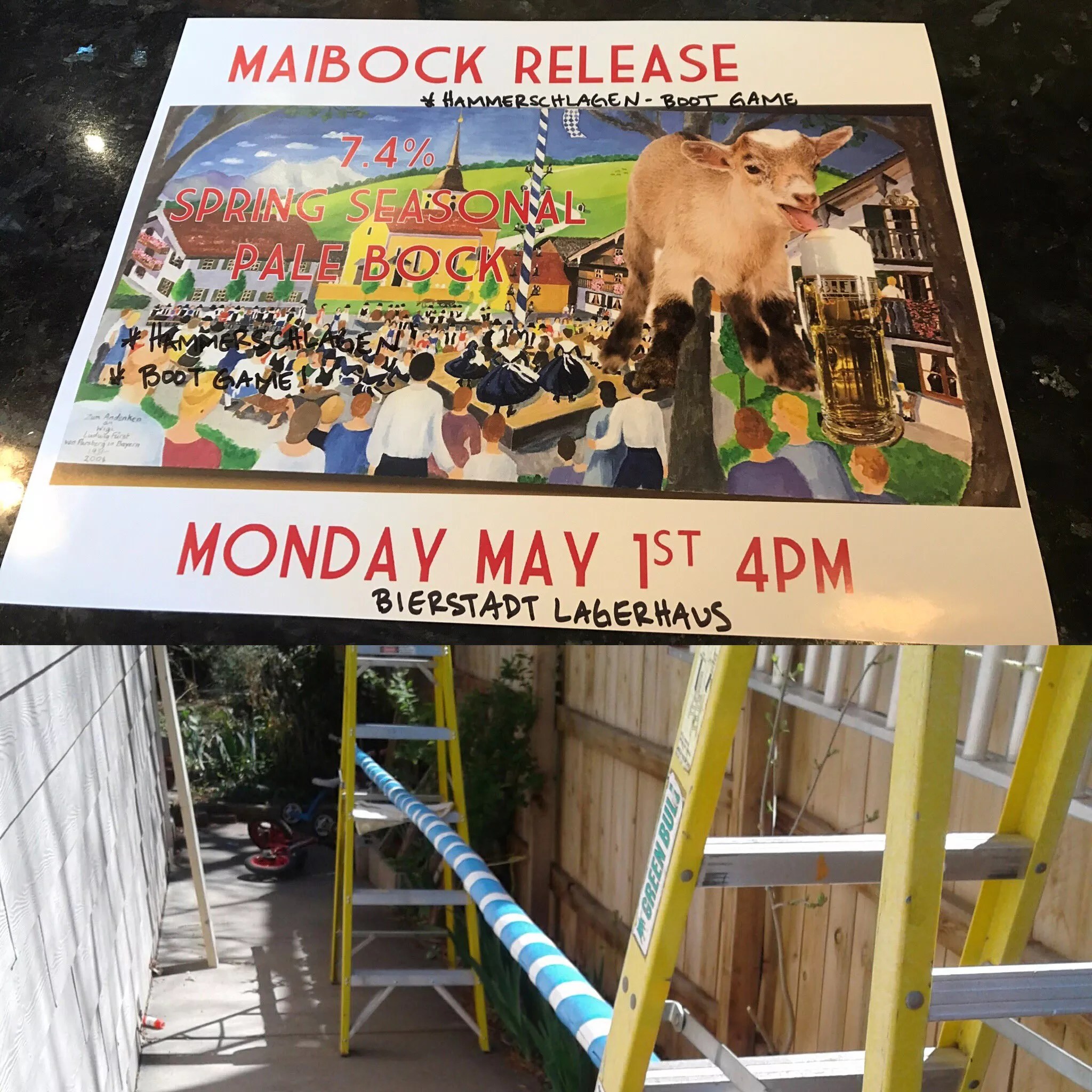 “Here at Bierstadt Lagerhaus, we believe in releasing beers at the appropriate time – hence Maibock (May-Bock) is released at the beginning of May,” says the brewery. “Our Maibock is pale in color and rolls in around 7.4 percent. So, even though it is a Monday, we will be drinking Maibock – putting up a fancy maypole and playing German music, Hammerschlagen and 2L boot game.”