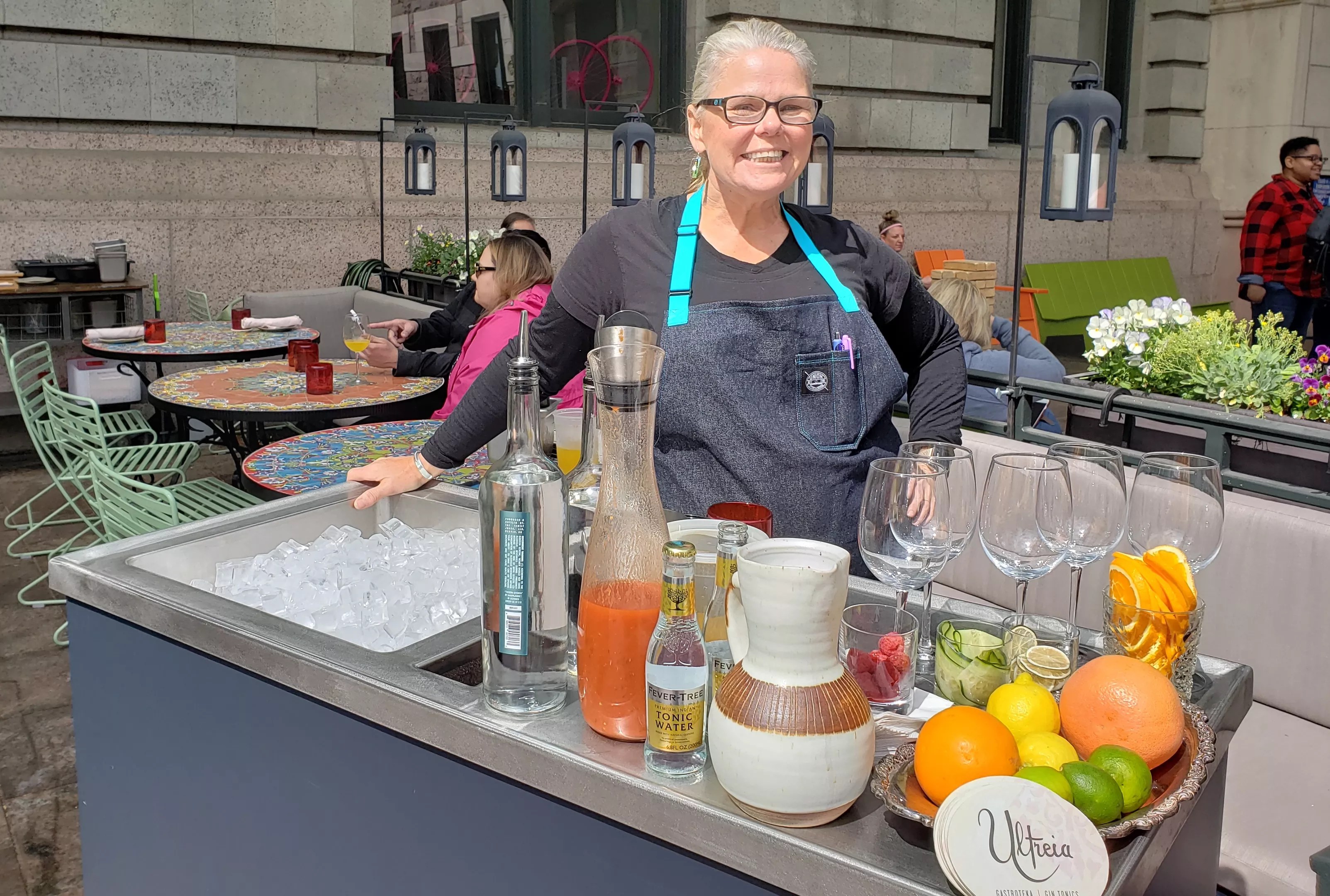 Chef/restaurateur Jen Jasinski outside Ultreia, which is donating 10 percent of sales on October 14 to the National Sports Center for the Disabled.