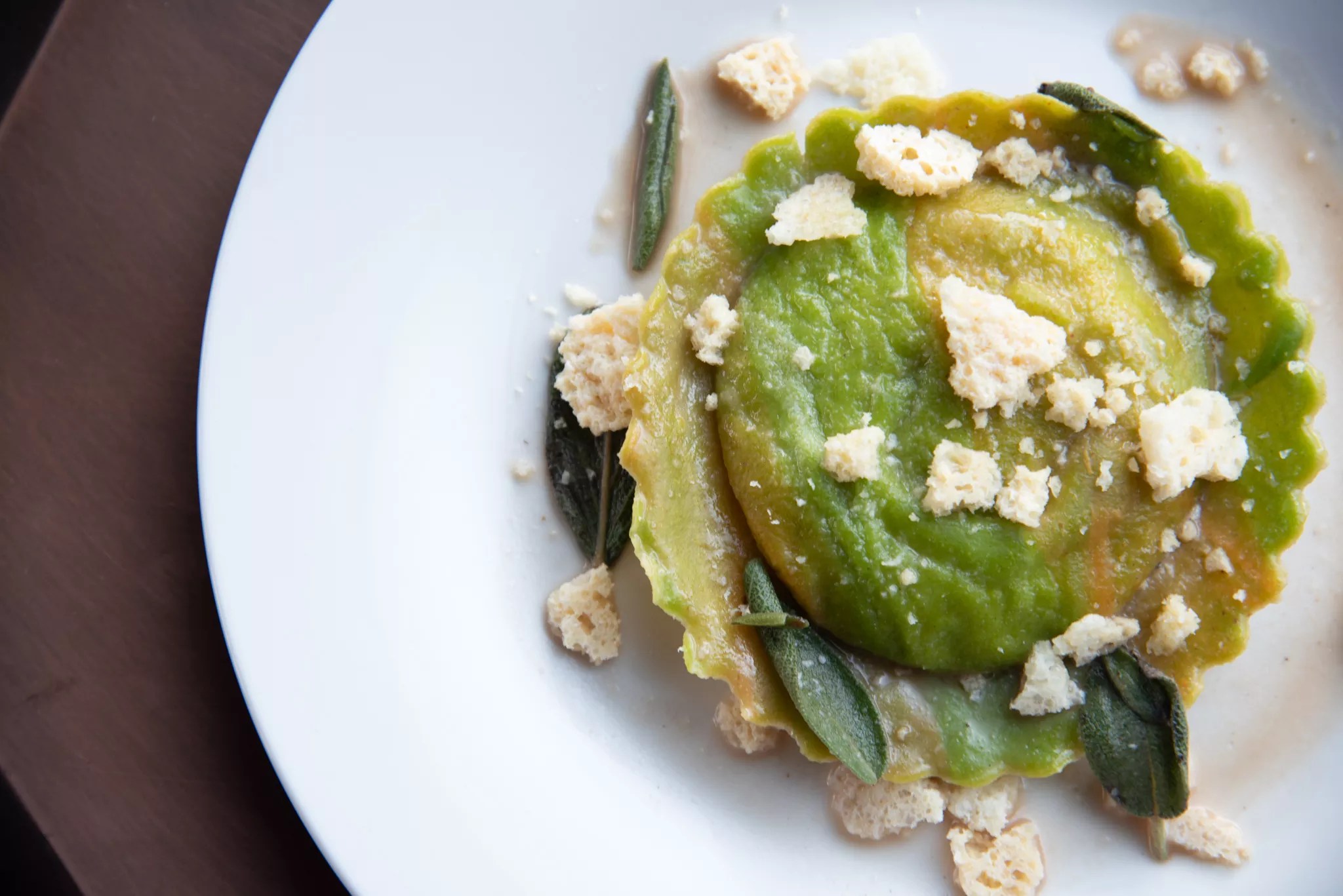 Indulge in this luxurious raviolo of bison, butternut, sage and ricotta before Lent raises its ugly head.