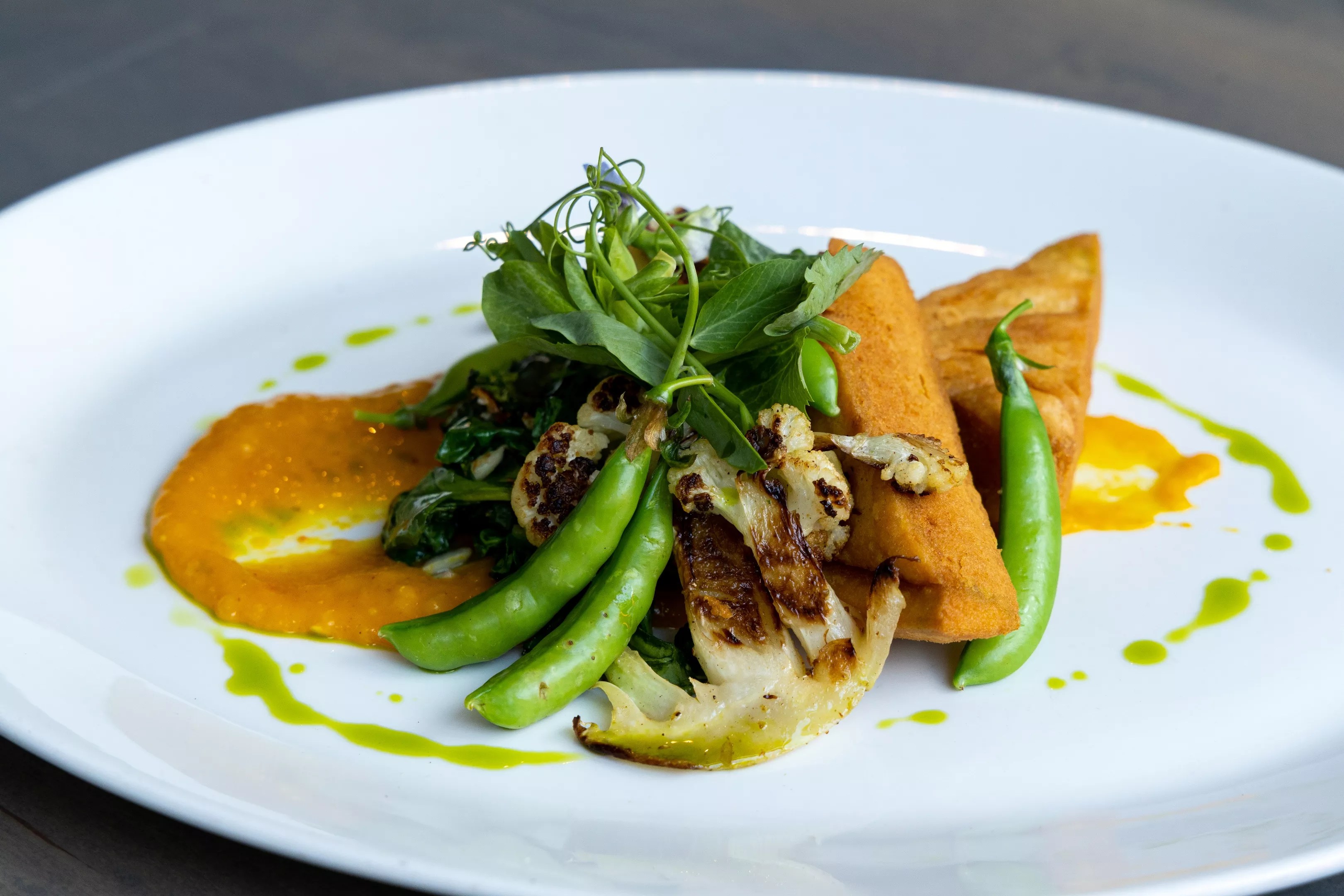 The meatless “Taste of Spring” entree uses chickpea-based panisse as the main protein.