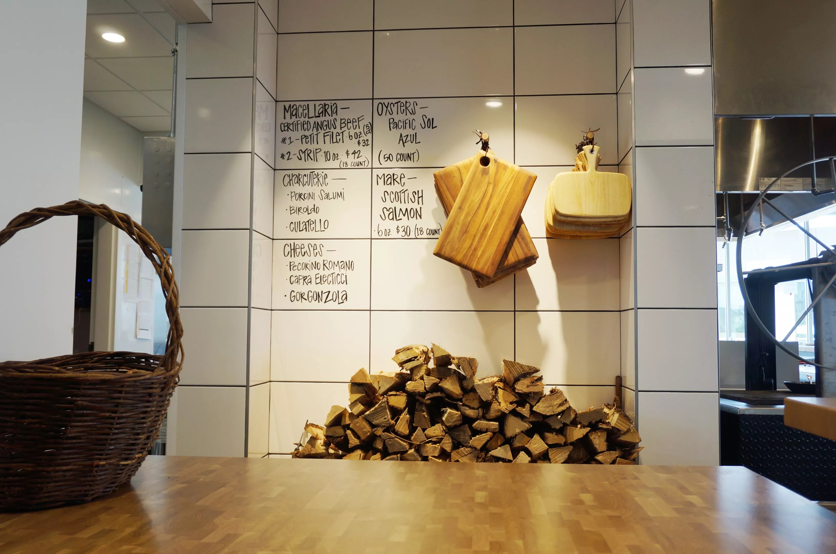 Daily specials and salumi-board offerings are listed on the pantry wall.