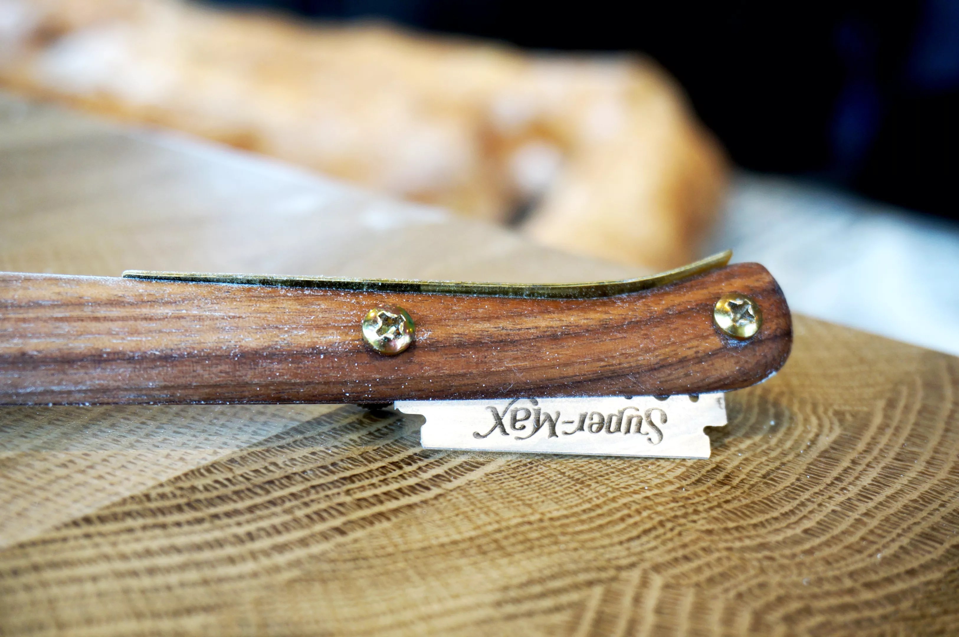 A scoring tool used to make precise cuts on bread before it goes in the oven.
