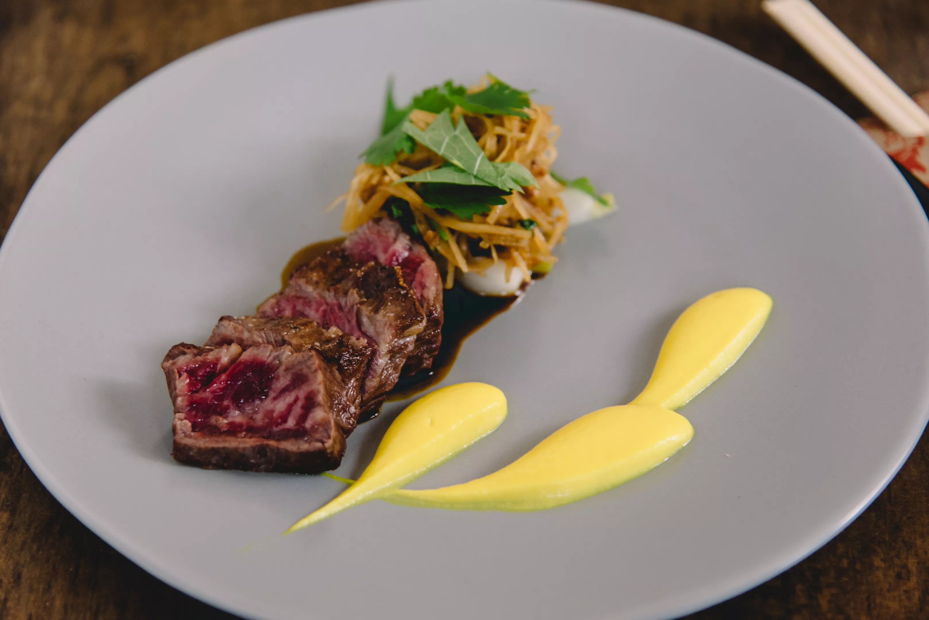 Wagyu: rib eye, cilantro, turnip, applewood.
