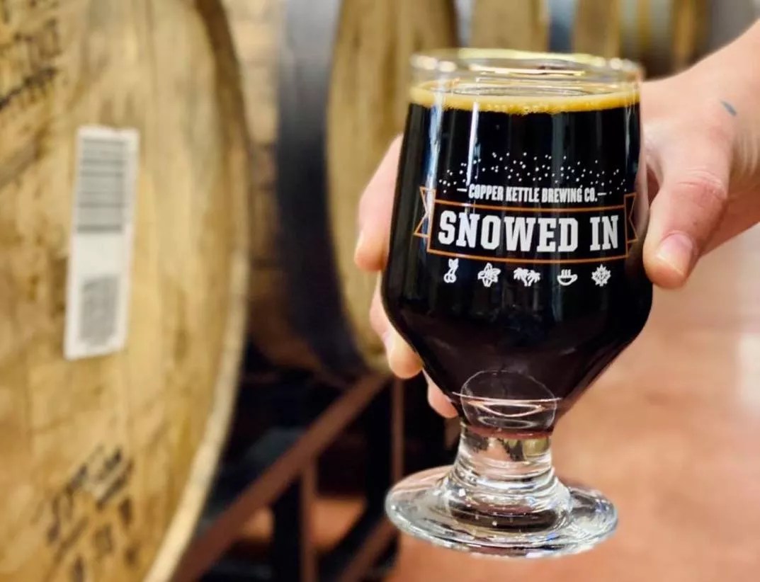Snowed In Mocha Stout returns to Copper Kettle Brewing for its 2021 iteration. This 12.5 percent ABV imperial oatmeal stout is made with chocolate and local coffee and aged in bourbon barrels. It is available on draft and in 19n-ounce cans to-go.