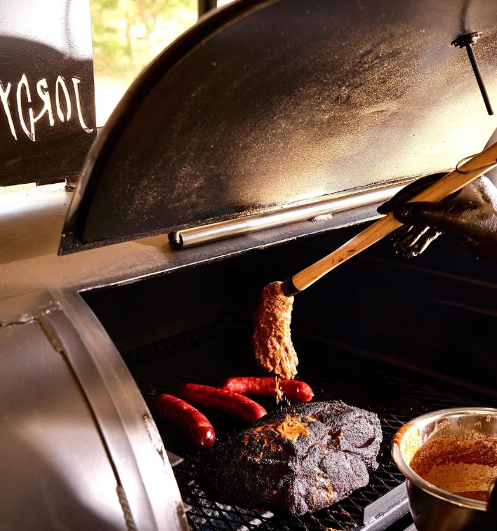 The truck is outfitted with a custom smoker.