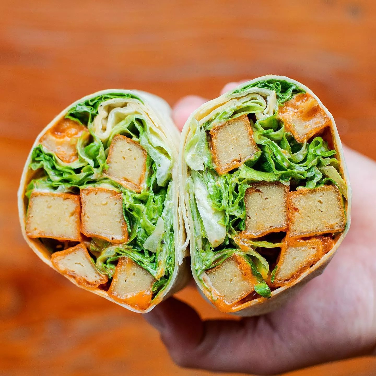 Of course, Denver’s iconic vegetarian restaurant is going to come strong with its wing game. The faux flappers here are made from seitan and can be tossed in a traditional spicy Buffalo sauce or a slightly sweet barbecue sauce. Served as an appetizer, they come with vegan ranch and celery, but the wings also make another appearance in the eatery’s Buffalo wrap, tossed in Caesar dressing and showered with greens.