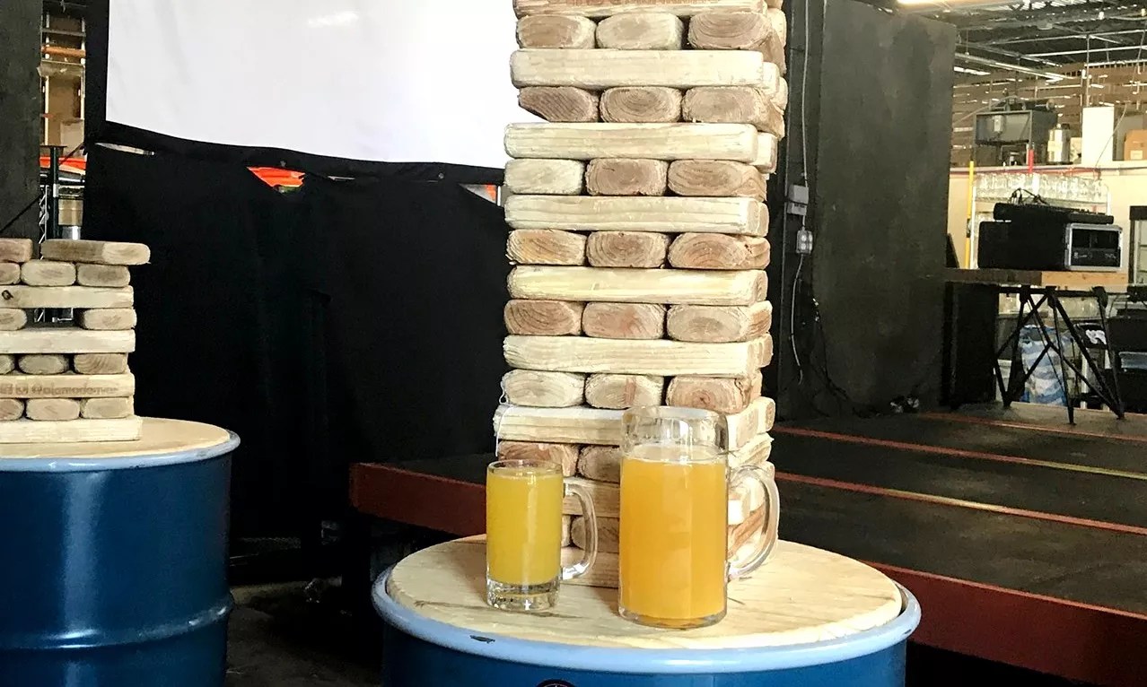 There’s plenty of room in the enormous warehouse space (that was once a book-binding company) for giant versions of standard bar games. Beer pong here substitutes cups and ping-pong balls with trash cans and dodge balls, but it’s not easy since your targets are so far away. Cornhole is played with bean-bag chairs that you heave at boards that are about five feet tall. Other fun games include giant Jenga and Connect Four.