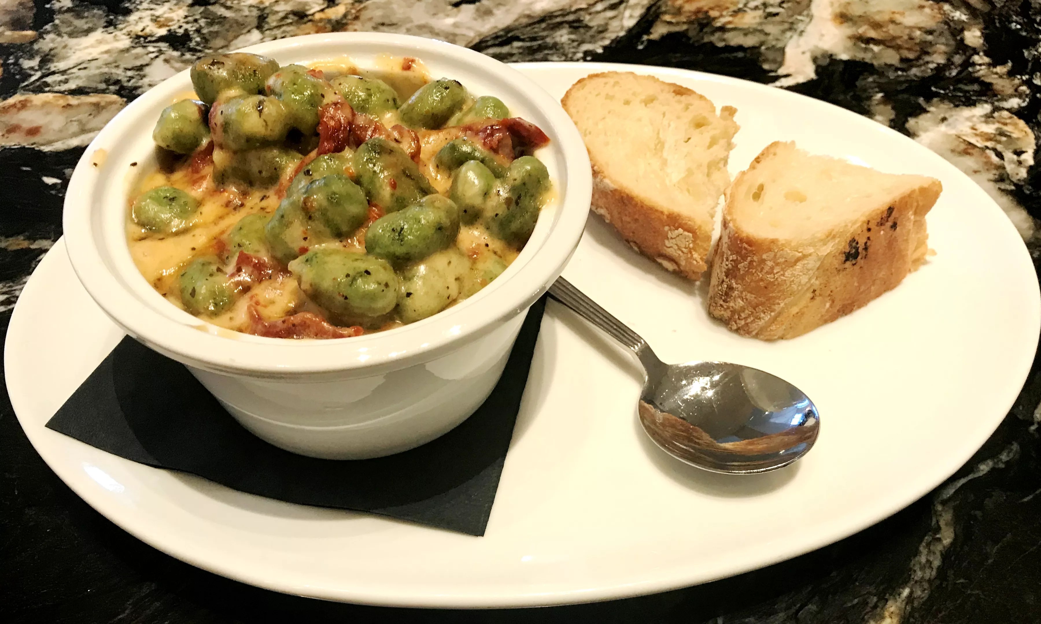 The gnocchi mac and cheese strays far from the brunch canon while remaining comforting and filling, especially considering how much of the potato pasta came in the large portion. This particular iteration captured the flavors of a Caprese salad, with basil-flavored gnocchi, mozzarella cheese sauce and sun-dried tomatoes.