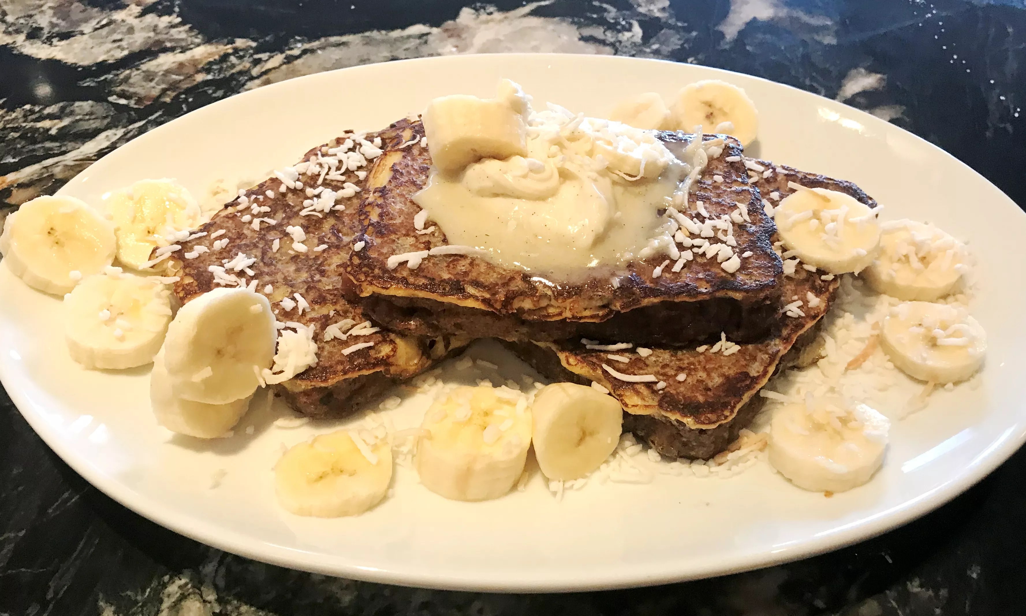 This looks like ordinary French toast, but it’s made with zucchini bread.