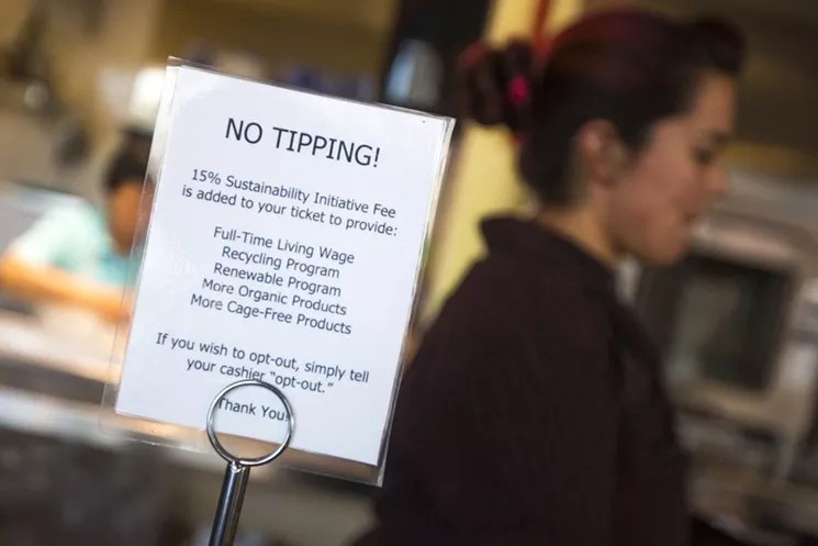 “Why You Should Vote Yes on Amendment 70 to Raise the Minimum Wage” Keep Colorado Working “Why You Should Vote No on Amendment 70 to Raise the Minimum Wage” On January 1, 2018, minimum wage for both tipped and un-tipped workers in Colorado rose by 90 cents, to $7.18 and $10.20, respectively. It will rise by 90 cents again in 2019, and one more time in 2020, to $12 an hour ($8.98 for tipped workers), to meet the standards set by Amendment 70, which the state’s voters approved in November 2016. Most of the restaurant industry opposed the measure for one reason: Because kitchen staffers in the state’s independent restaurants are generally paid more than minimum wage, the amendment had the effect of giving servers a raise – without touching the incomes of the back-of-the-house staff, where restaurateurs feel an acute need to redirect money. How are restaurateurs solving the problem? Some are following the lead of New York’s Danny Meyer and building the tip into the tab, then creating a tipping pool. Others, like Duo, are adding service charges to the bill. Ultreia, which just opened last month in Union Station, has come up with a particularly novel idea: It’s adding a 2 percent charge to the price of each item on the menu, then sharing the wealth. What do you think restaurants should do to close the wage gap? Post a comment or send a note to cafe@westword.com.