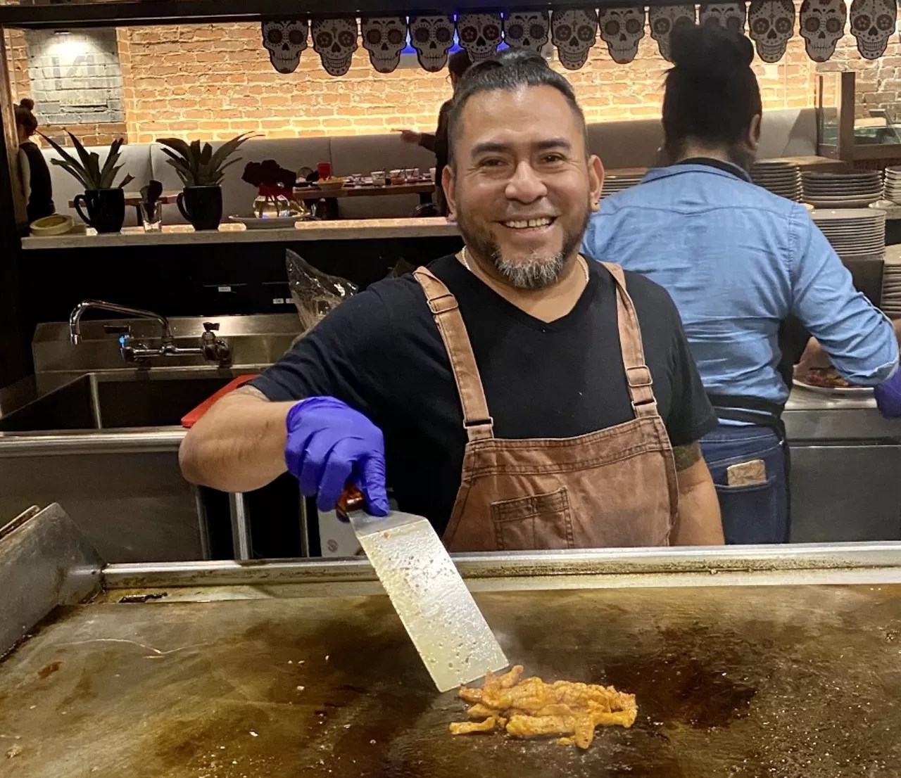 Julio named the restaurant El Rey de la Mesa, which means “The King’s Table,” after the bar where he worked as a boy. The decor is simple, with an open-kitchen concept, plenty of elbow room between tables, some Day of the Dead decor and ample patio seating.
