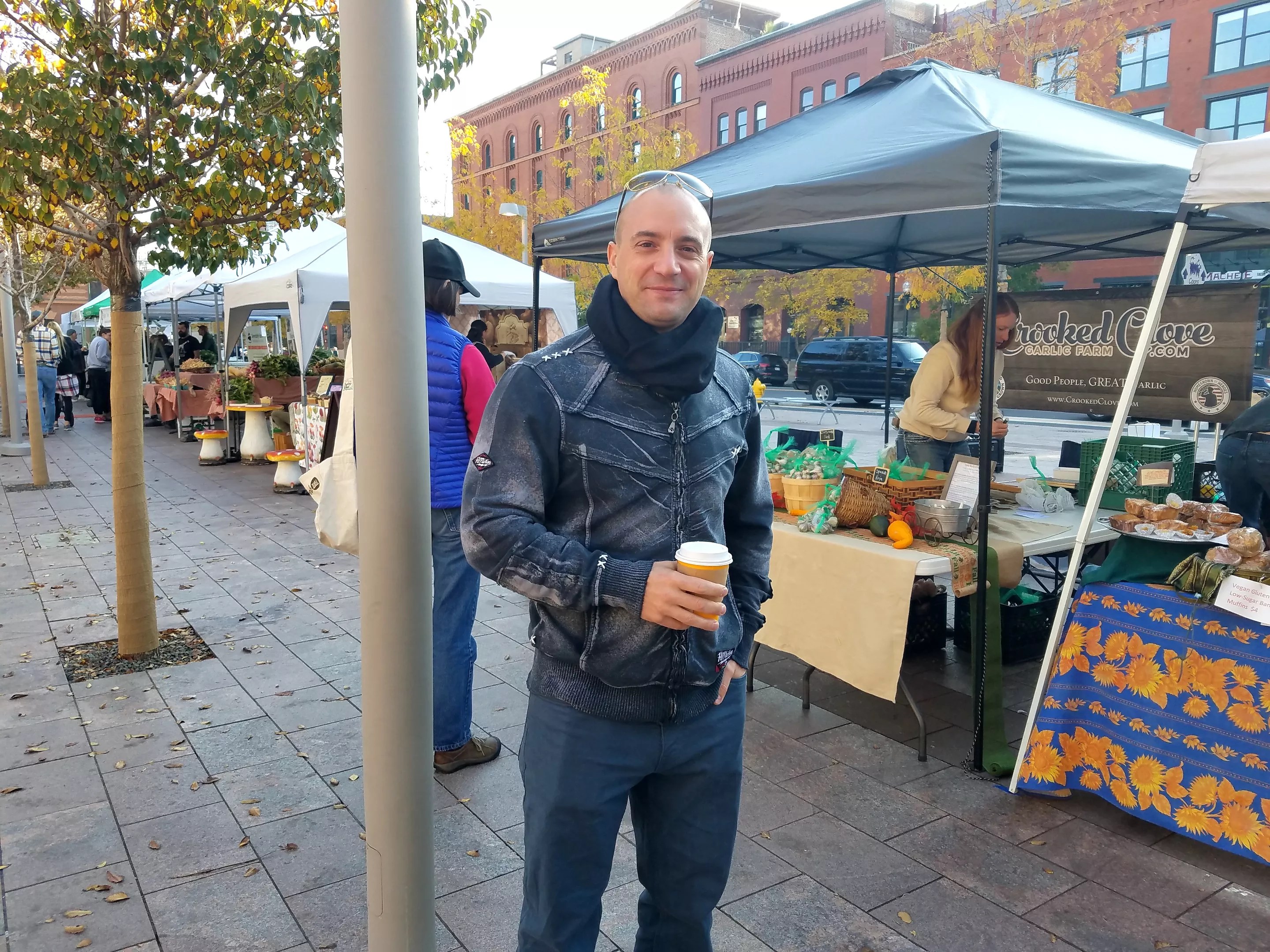 “In Florida you don’t really have farmers’ markets; it’s too hot and humid, and mostly it’s just fruit,” he says while clutching a hot cup of coffee from Pigtrain Coffee Company. “I just want to walk around and see what’s seasonal.”
