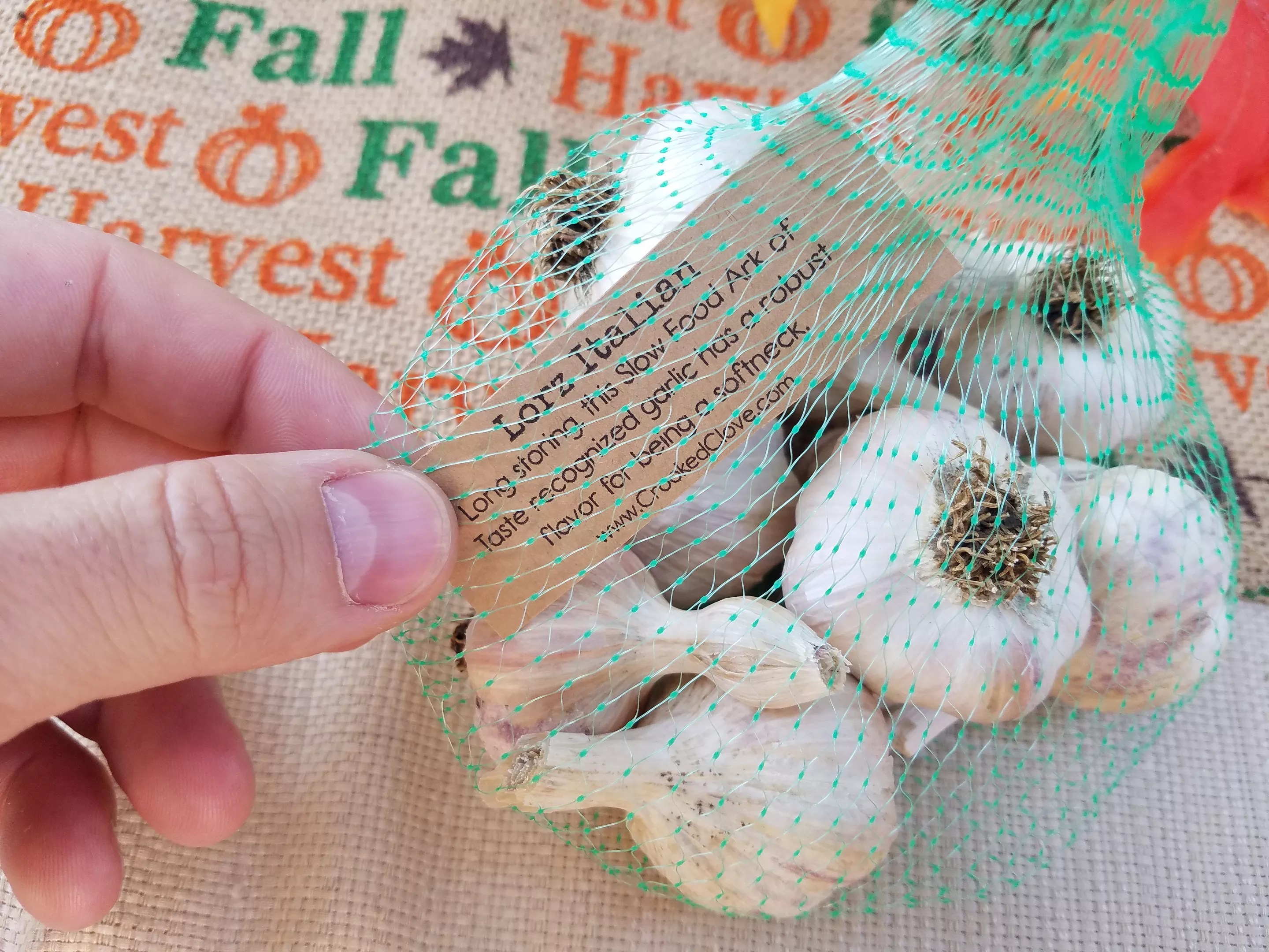 Lorz Italian garlic from the Crooked Clove Farm & Ranch out of Larkspur. This softneck garlic has a robust flavor but isn’t overpowering.