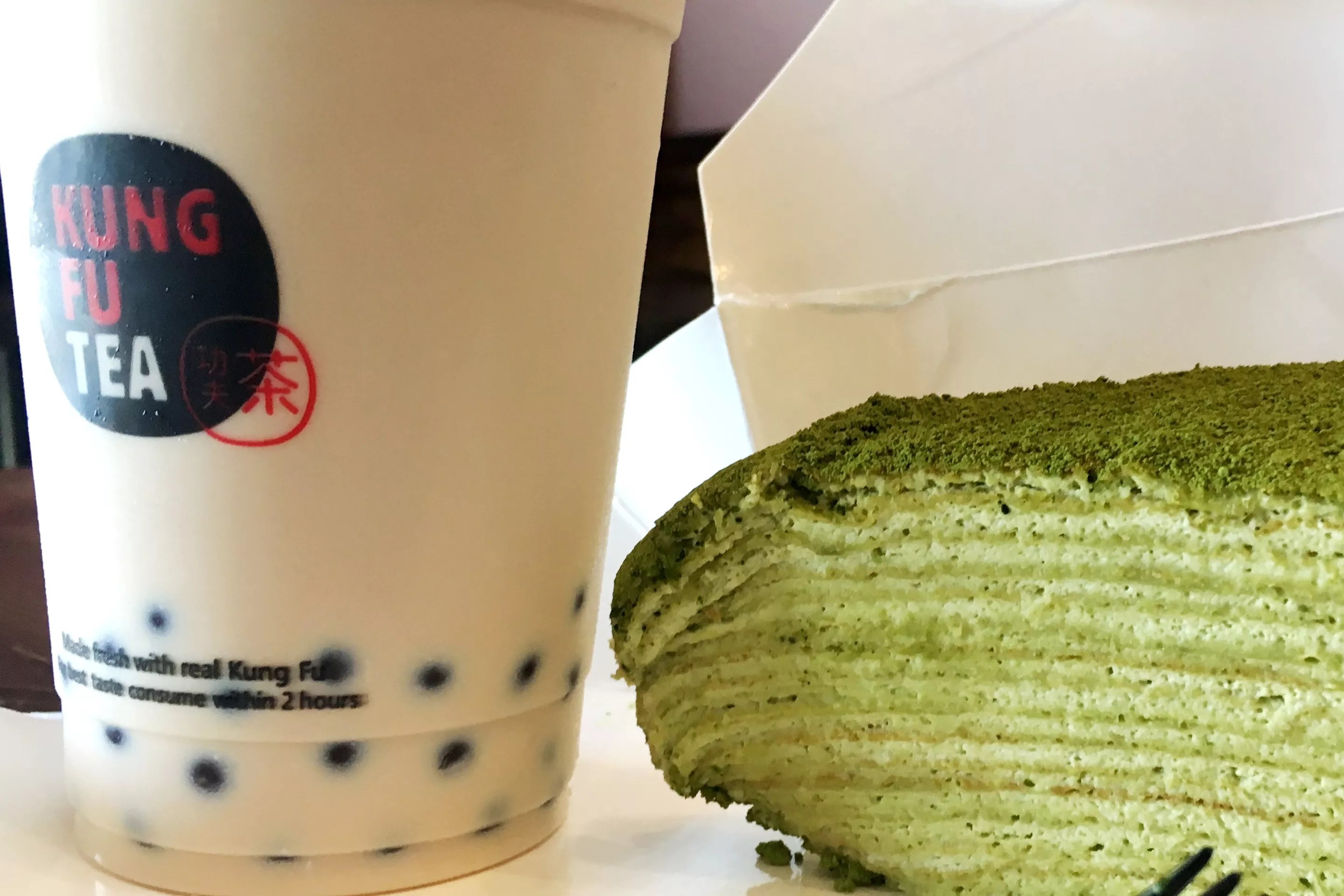 Popping bubbles and a crepe cake at Kung Fu Tea.