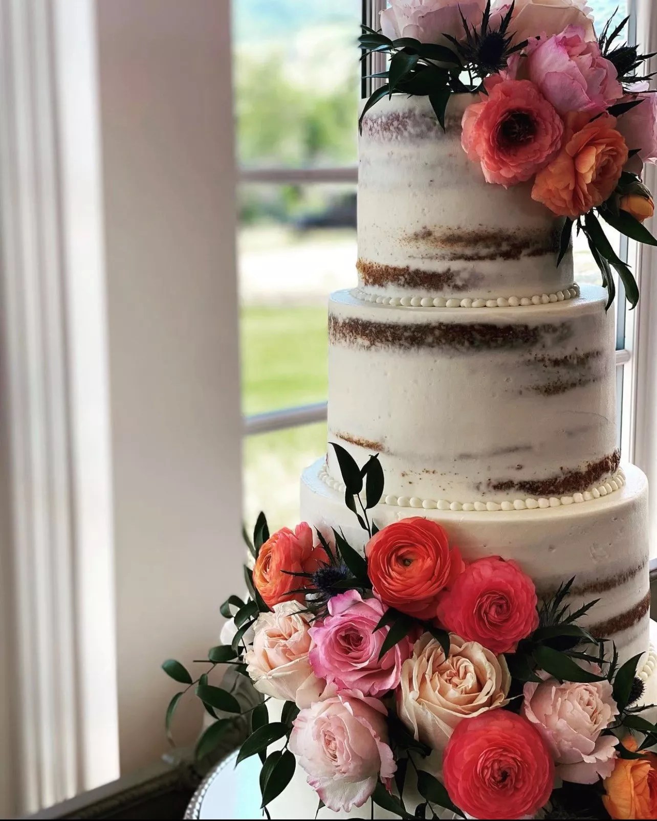 A semi-naked cake created for a wedding at The Manor House in 2021.
