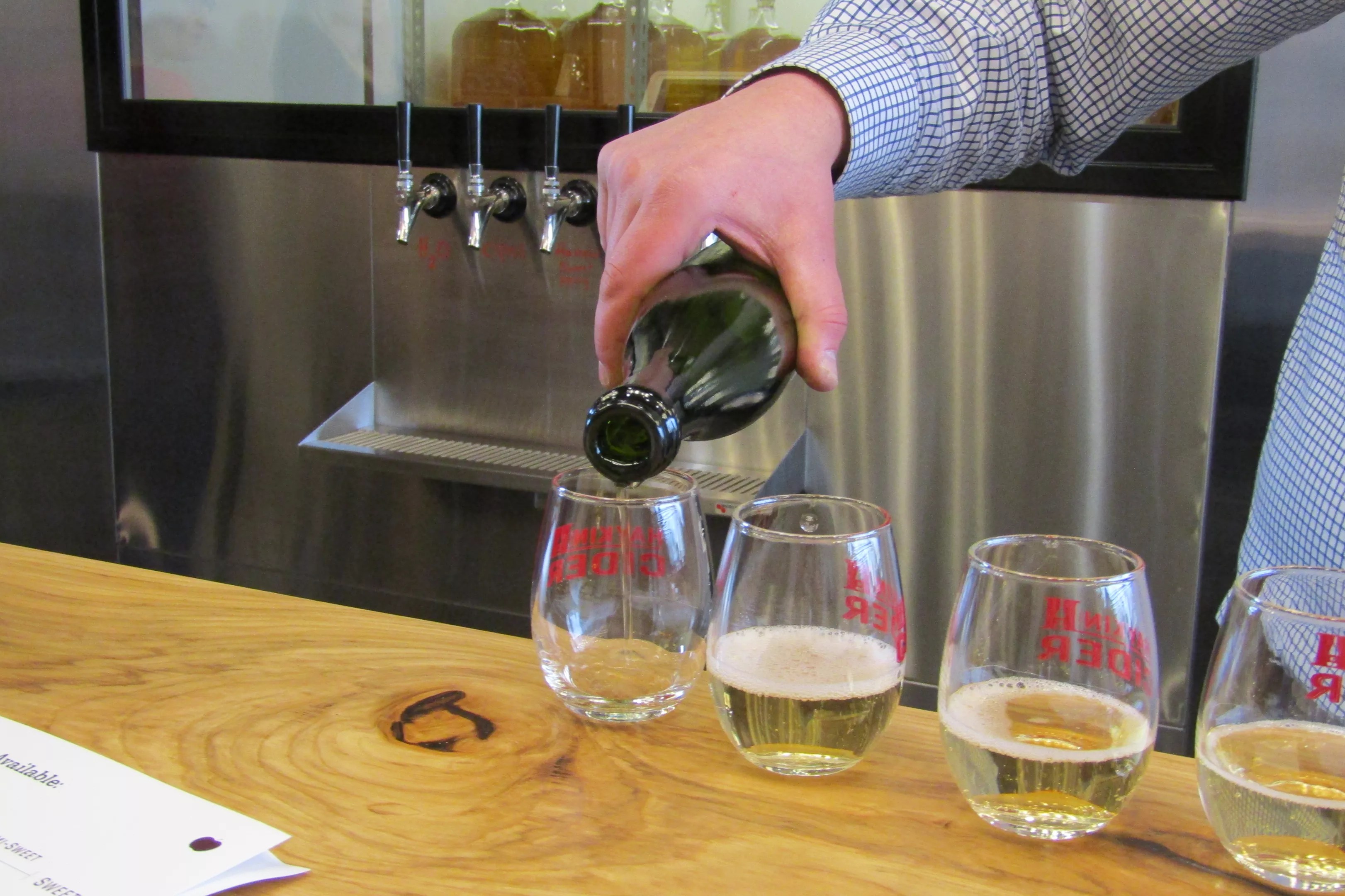 Daniel Haykin pours samples of his single-varietal cider.