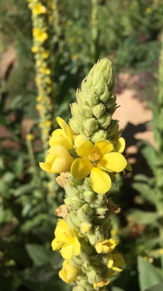 Mullein grows flower spikes several feet tall, so is easy to recognize.