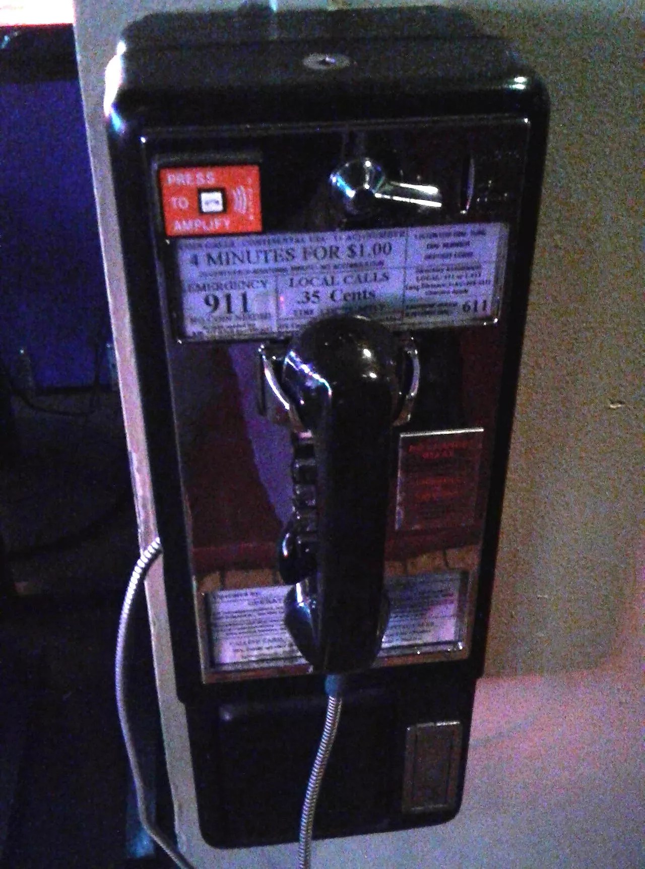 In case you need a pay phone for some reason, or if you just want to wax nostalgic about when people used to actually use pay phones, J.L.’s Cheers has got you covered.