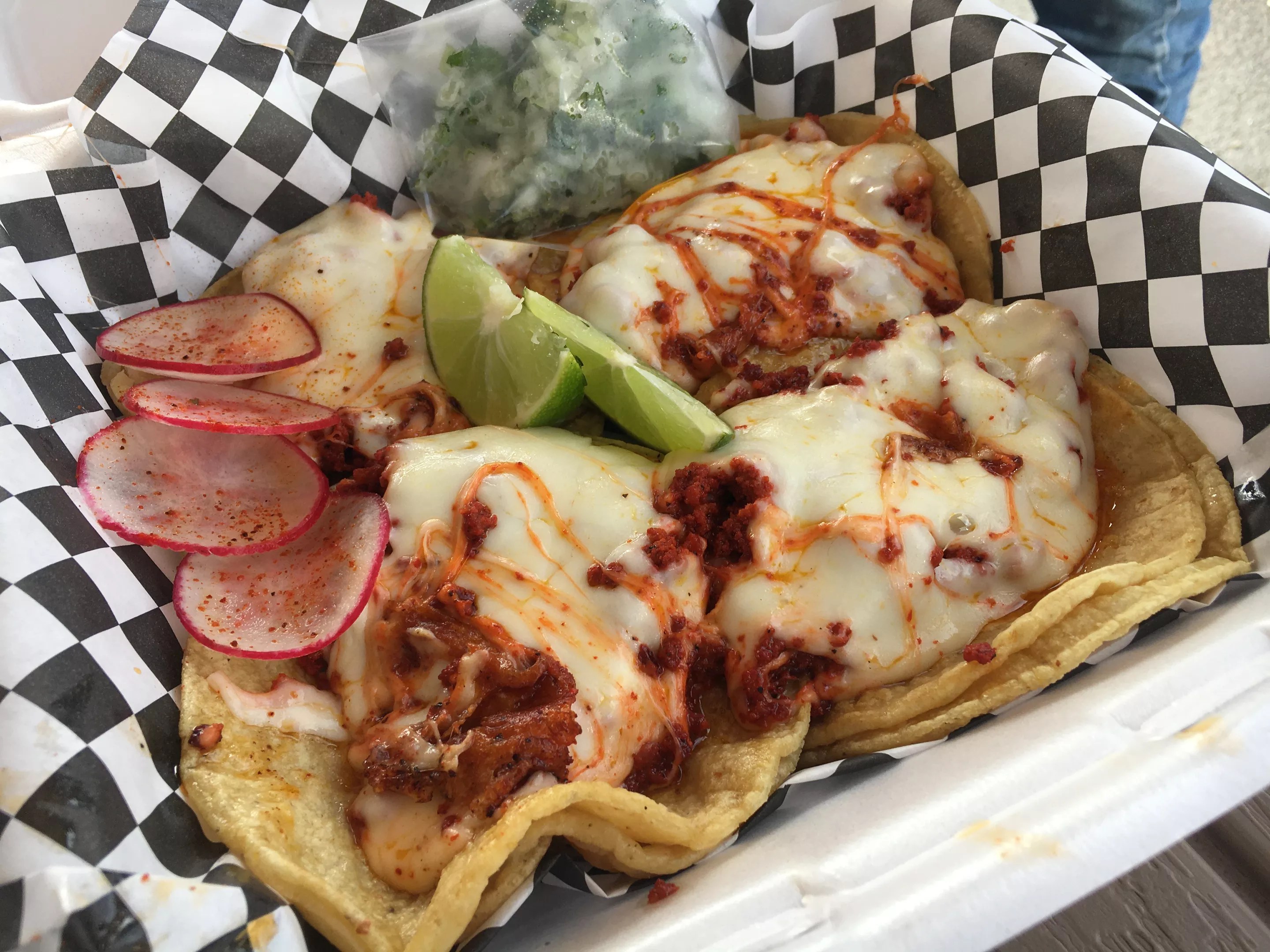 These cheesy chorizo tacos from La Carpa are trending up in the Mexican street food scene.
